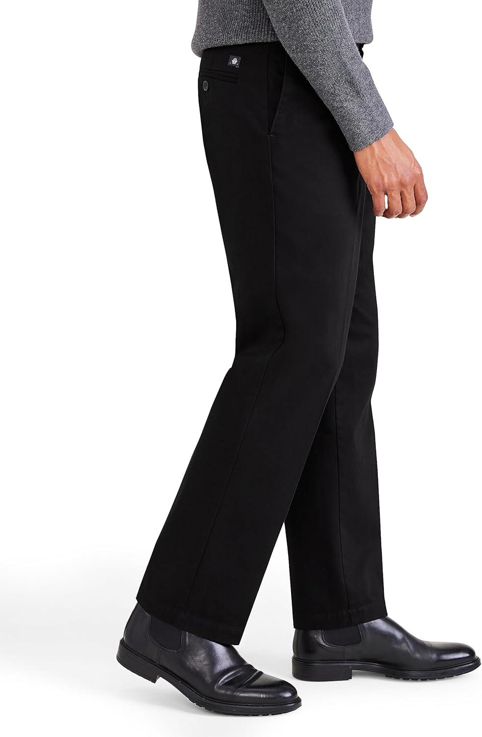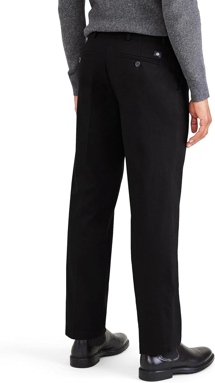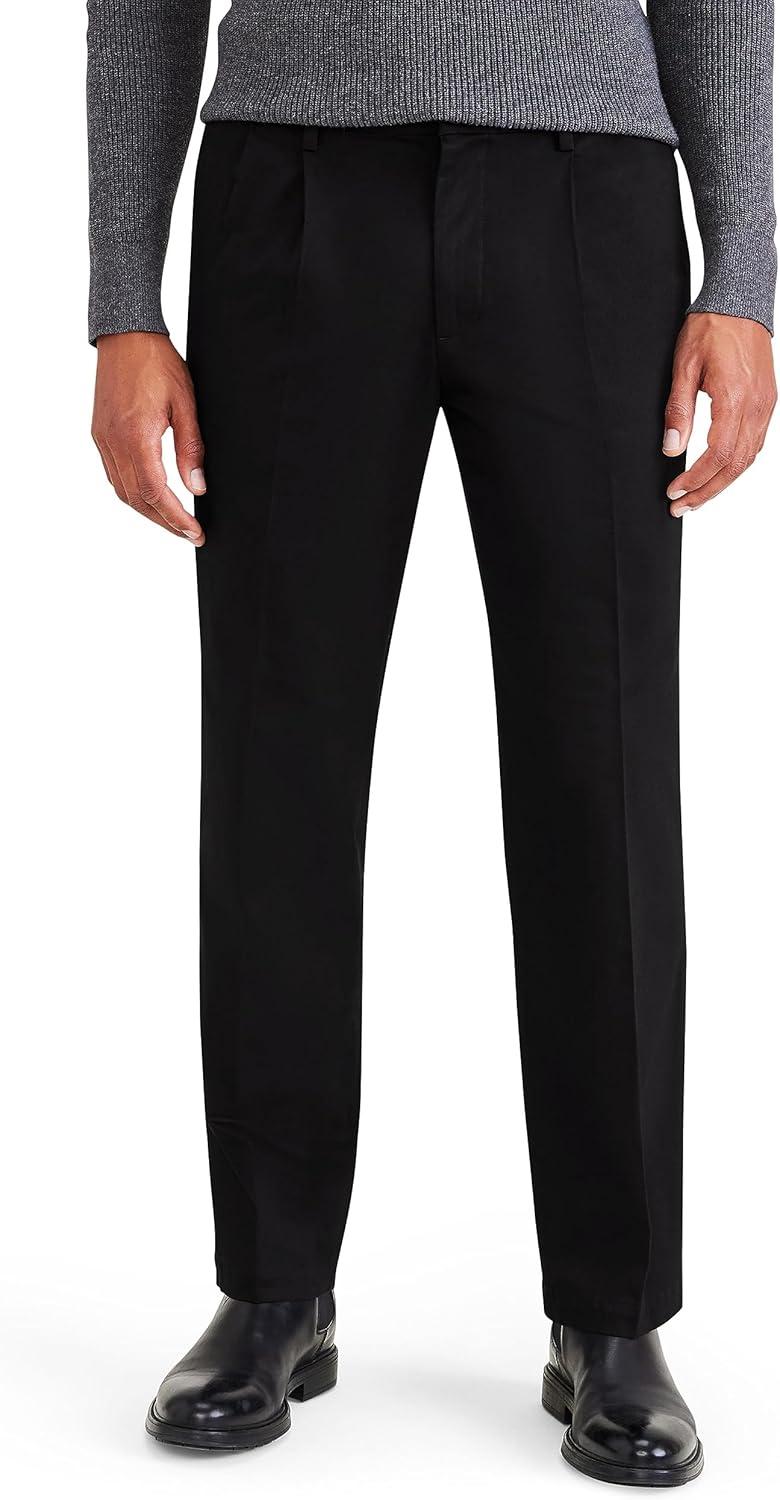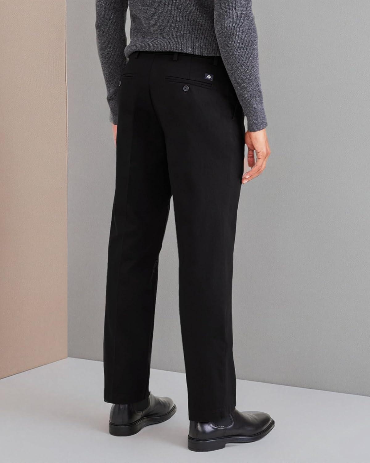 Classic Fit Signature Iron Free Khaki with Stain Defender Pants – Pleated (Regular and Big & Tall)(Beautiful Black)