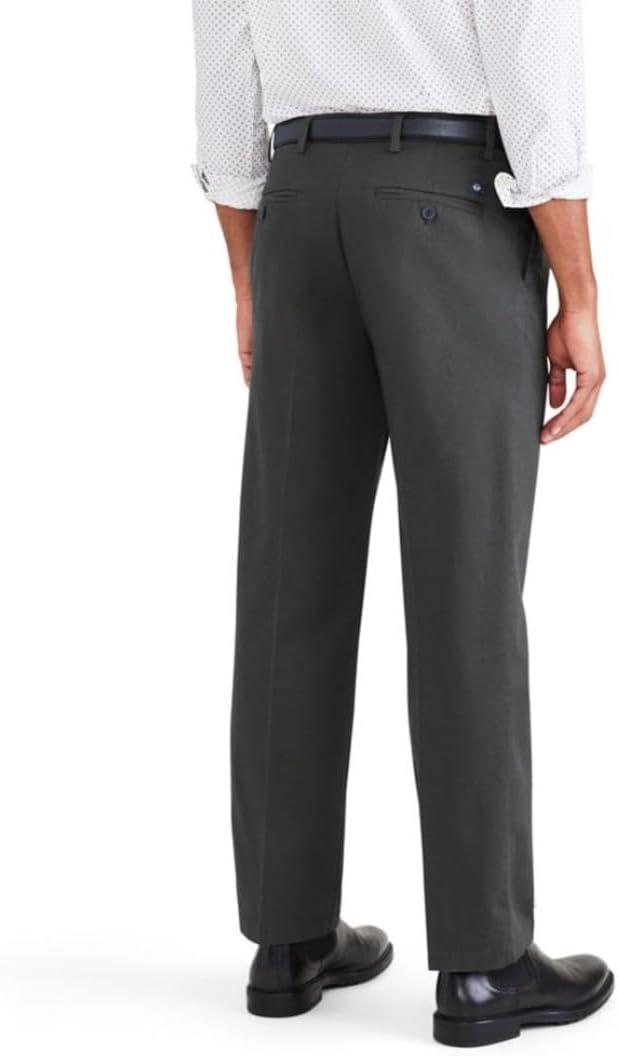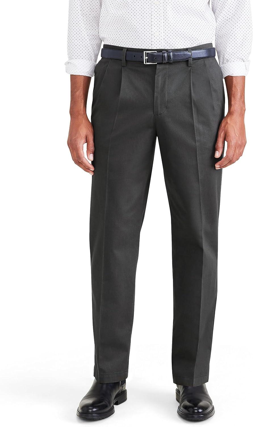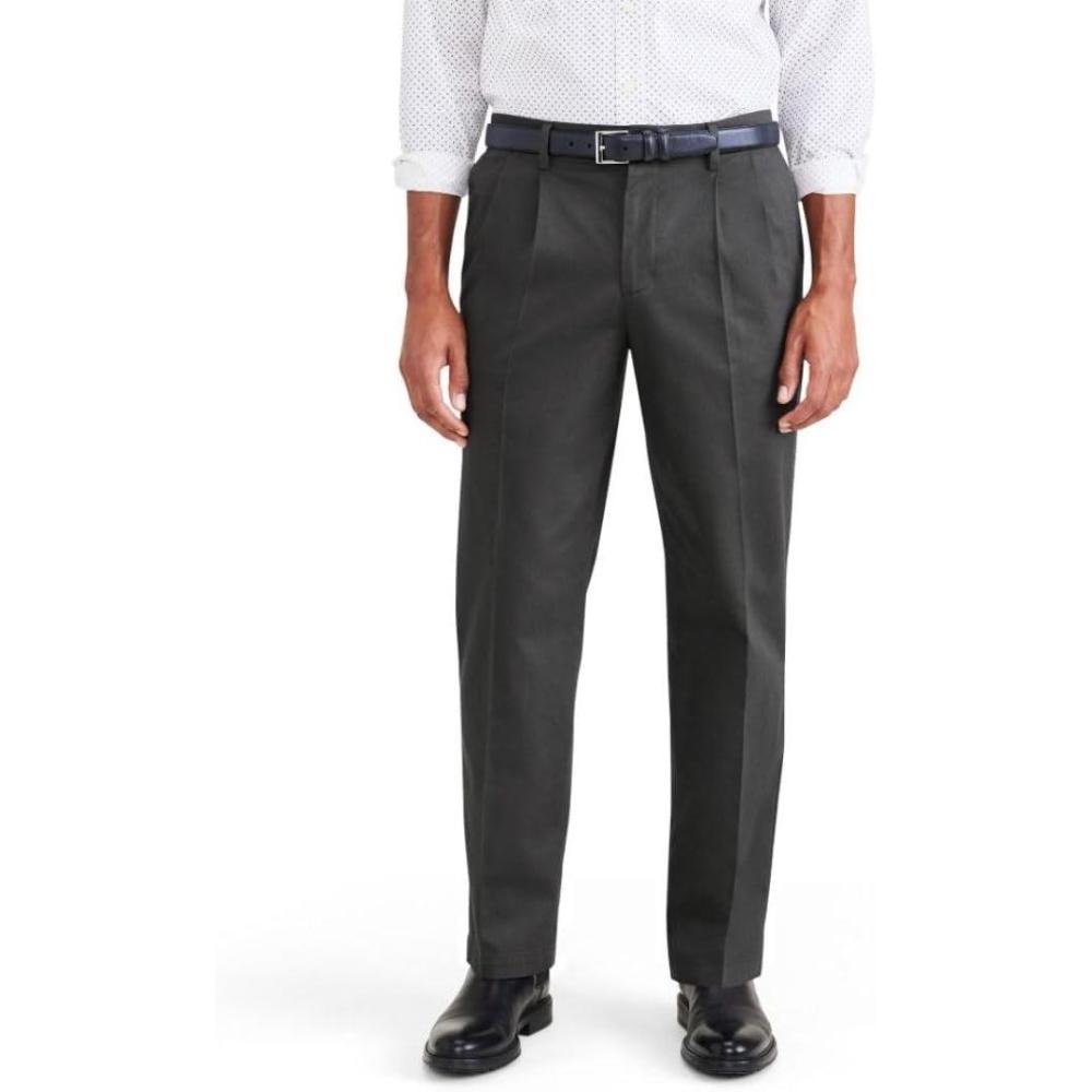 Classic Fit Signature Iron Free Khaki with Stain Defender Pants – Pleated (Regular and Big & Tall)(Steelhead)
