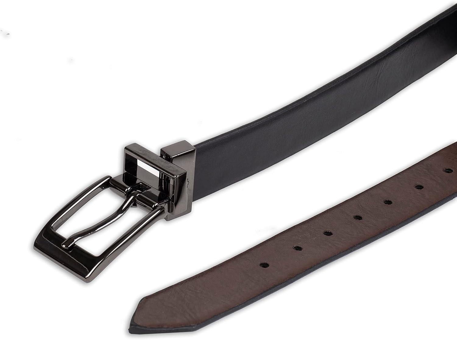 Dockers Boys’ 2-in-1 Reversible Belt – Versatile for School, Casual & Dress Wear(Black/Brown Feather)