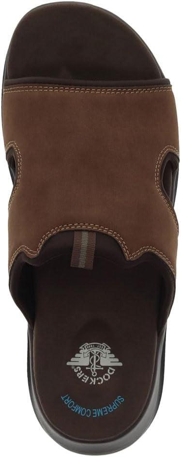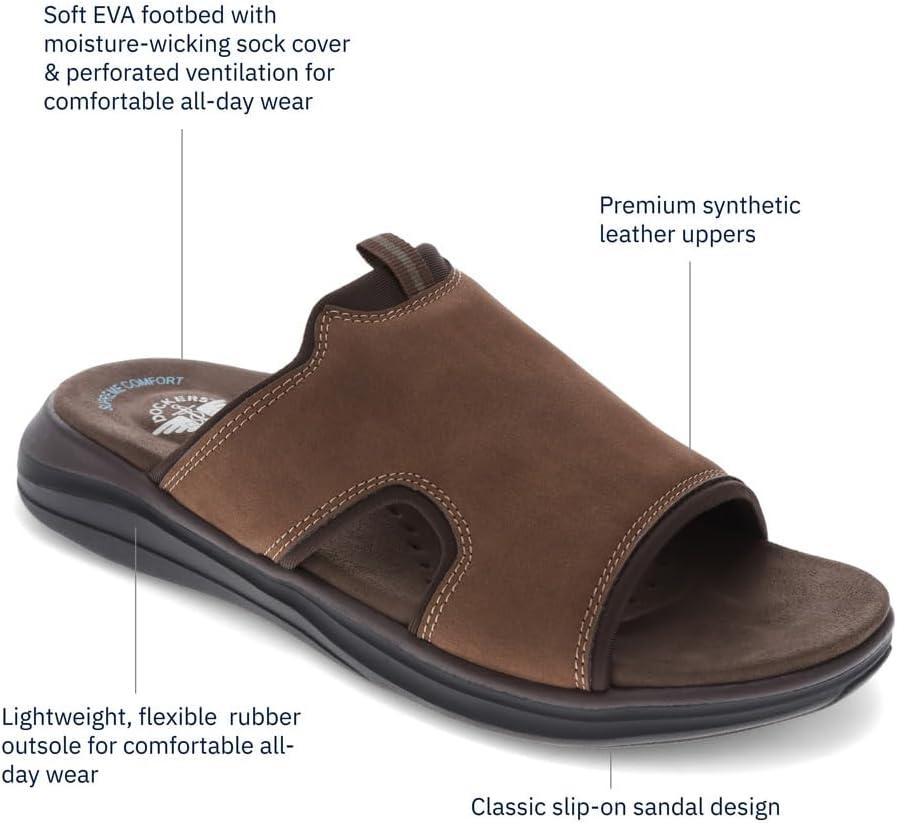 Slide into comfort and style with these Dockers casual sandals and you’ll be ready for anything. Add them to jeans or shorts and let the synthetic leather uppers elevate your look, while the lightweight, flexible TPR outsole creates long-lasting traction and support. Plus, these sandals will keep you feeling cool and relaxed all day long thanks to their extra-soft EVA footbed, which features a moisture-wicking sock cover and perforated ventilation. Designed to complement any casual look and built to bring you truly personalized comfort, these Dockers’ sandals will be a go-to for any day. So go ahead, meet up with friends for lunch or embrace some time in the sun — these slide-on sandals are ready to offer you style, support, and comfort anywhere you go.