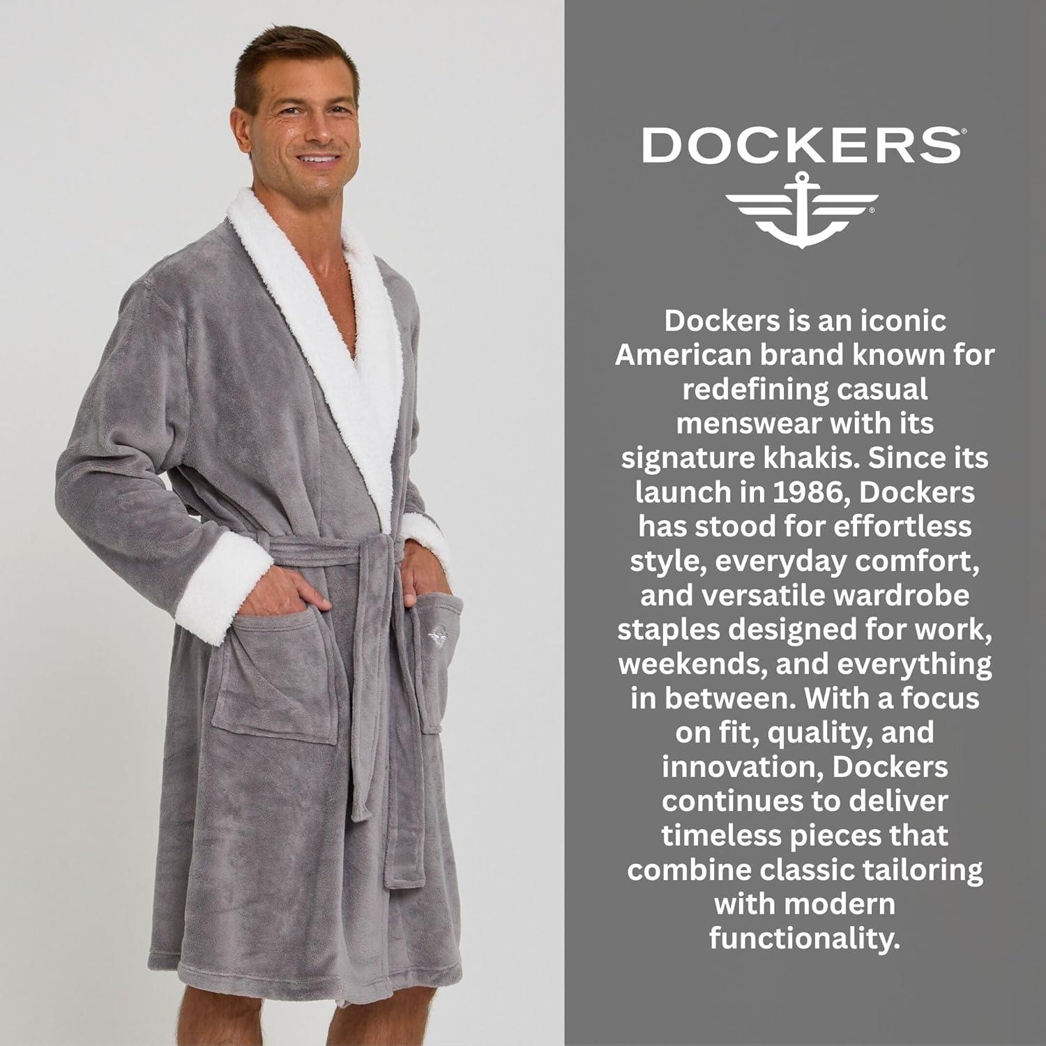 Wrap yourself in comfort with this Dockers men's robe, ideal as a bath robe for college dorm or quiet mornings. This bath robe men love is made with plush fleece and sherpa trim for a soft feel. Whether you need a bath robe mens or a warmer option, this robe delivers all-season comfort. With classic styling and modern softness, it outperforms most bath robes. It's a durable bathrobe men reach for often. Crafted for downtime, it joins the best bathrobes made for real life. Whether as a bathroom robe or a gift, it's a favorite. Its black color makes it a black robe men appreciate for both style and function. It’s a comfy robe with hotel-level softness built in. Need a post-shower layer? This cotton robe men dries fast and stays warm. It’s the cozy robe you’ll wear again and again. A lightweight fleece robe, perfect for daily lounging. The sherpa trim makes it a true fluffy robe. With cloudlike softness, it’s the fuzzy robe you’ve been looking for. Bring a hotel robe feel home or use it as your house robe. This men bathrobe is built for comfort. The right men robe for cool mornings or evening routines. Add it to your men robes collection. A premium mens bath robe for men who value comfort. Our mens bath robes for men combine warmth, function, and ease. Sherpa details and sleek lines make this mens bathrobe stand out. Dependable mens bathrobes built to last. These men's bathrobes also make great gifts. Try a mens cotton robe for extra breathability. Every men's robe should feel this plush. Choose a mens robe plush style that feels like a hug. Comfortable mens robes make mornings better. Trusted men's robes from Dockers. Whether it’s a plush robe, robe for men, or your go-to robe men reach for, this checks every box. The robes for men you’ll keep close. A shower robe men can wear daily or a giftable soft robe, it even rivals a spa robe.