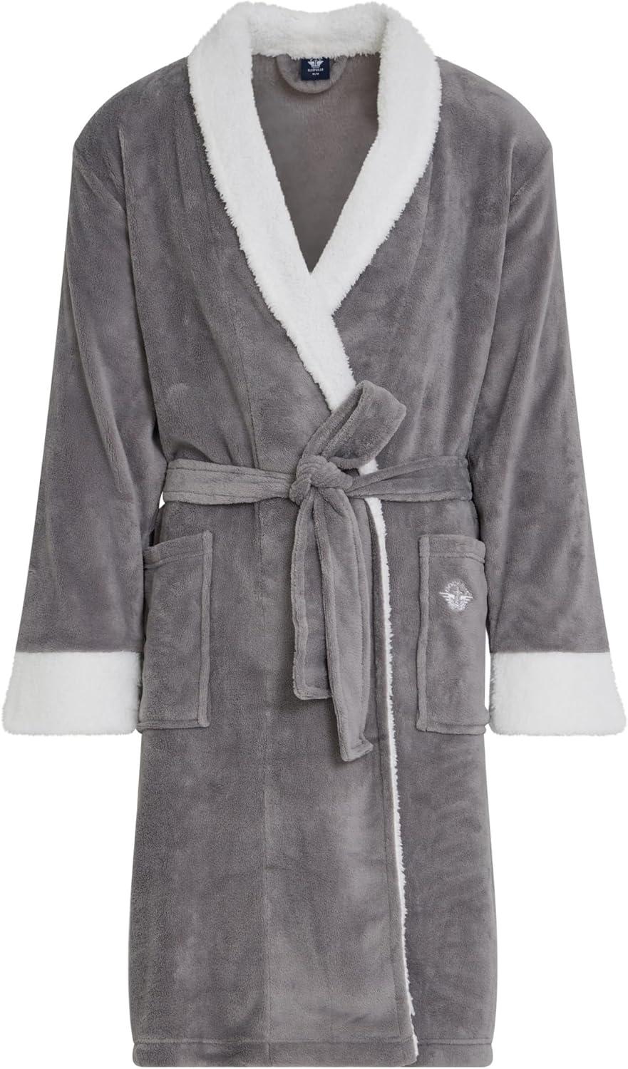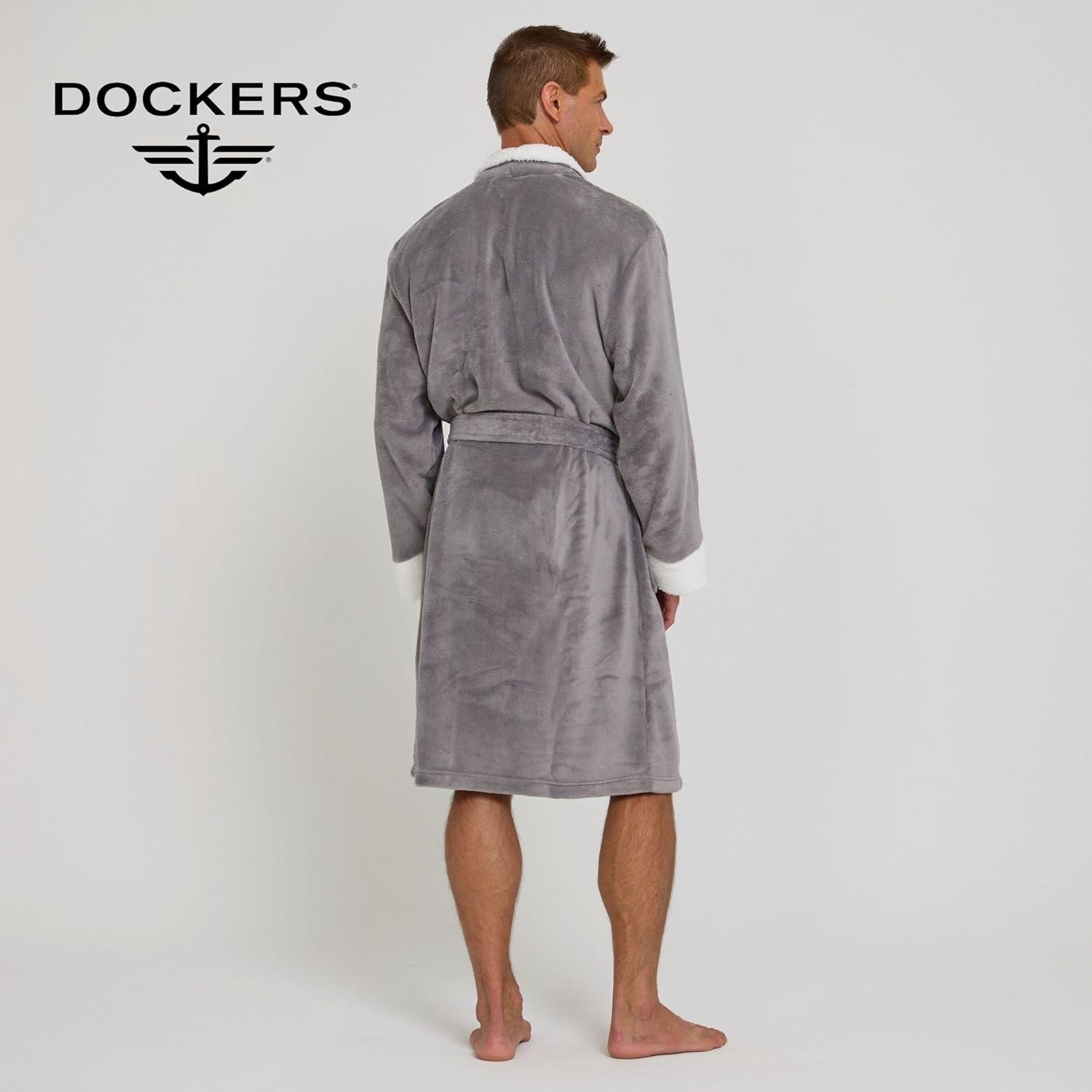 DOCKERS Mens Bath Robe for Men Plush Sherpa Shower Robe with Pockets(Grey)
