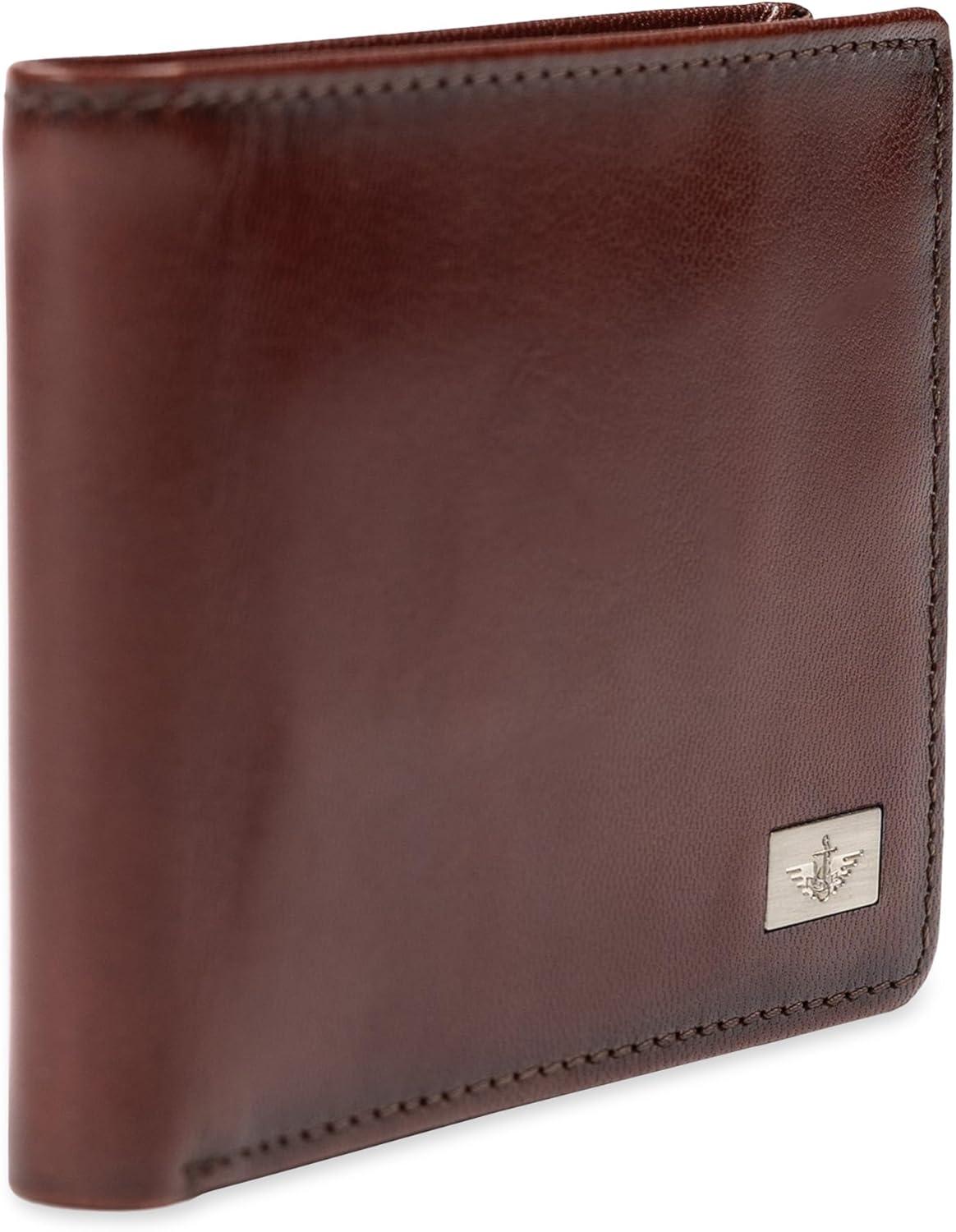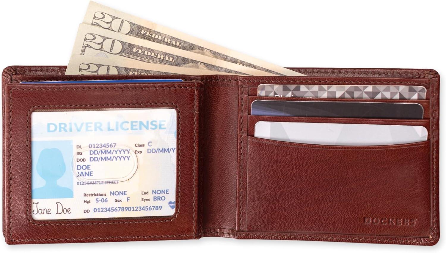 Dockers Men’s Bifold Leather Wallet – Thin Slimfold RFID Blocking Security Smart Extra Capacity(Cognac)