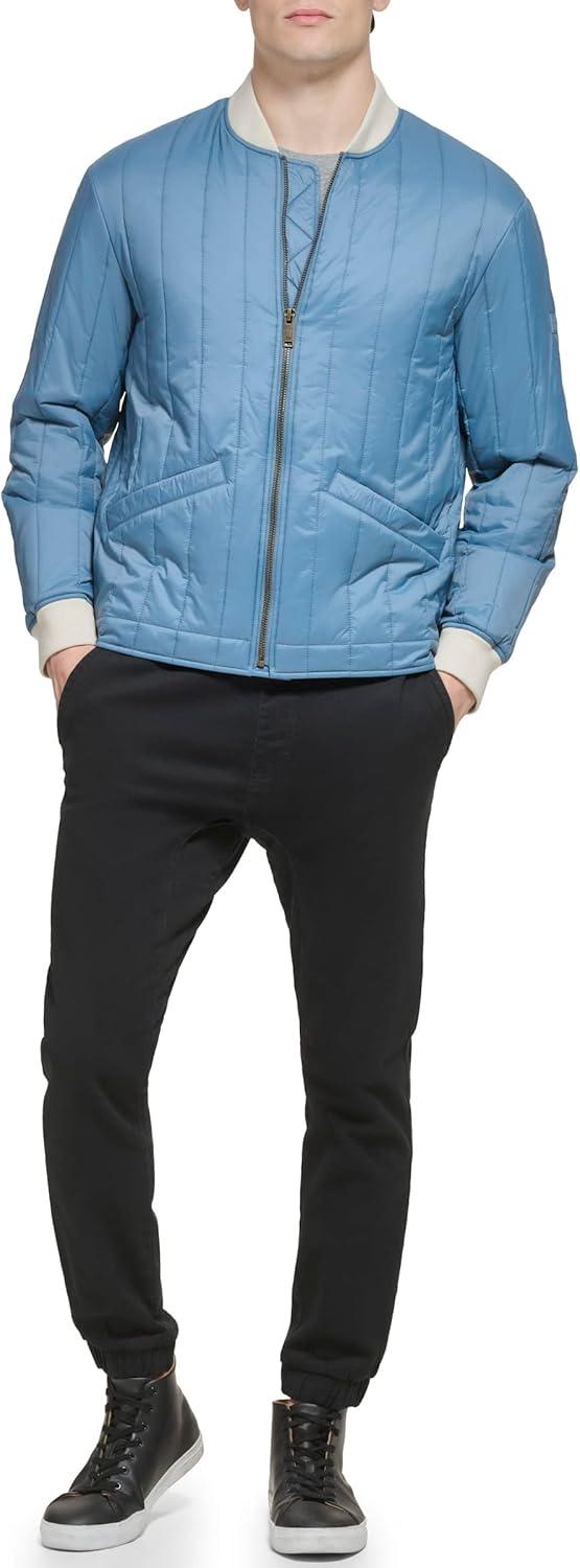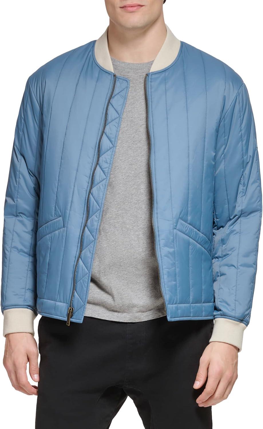 DOCKERS mens Channel Quilted Open Bottom Bomber Jacket(Blue)
