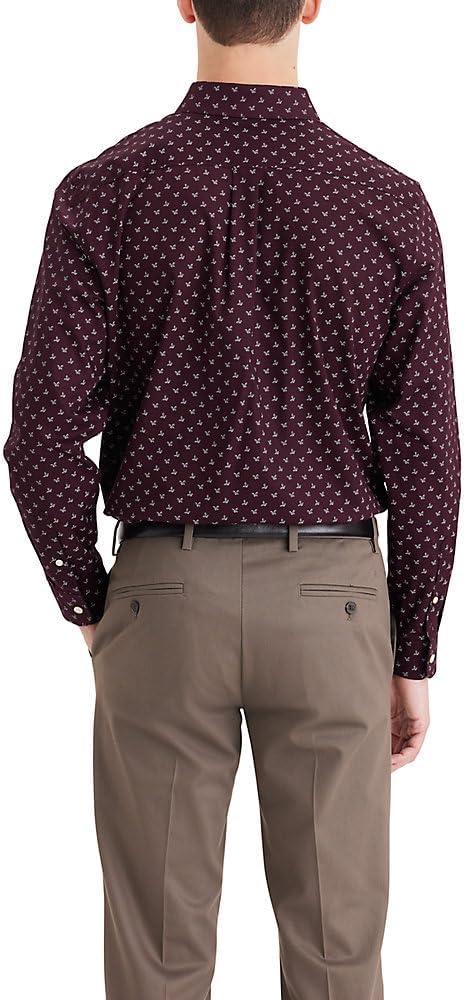 Dockers Men’s Classic Fit Long Sleeve Signature Iron Free Shirt with Stain Defender(Burgeon Winetasting)