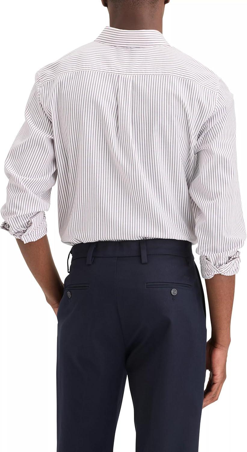 Dockers Men’s Classic Fit Long Sleeve Signature Iron Free Shirt with Stain Defender(Madison Lucent White Stripe)