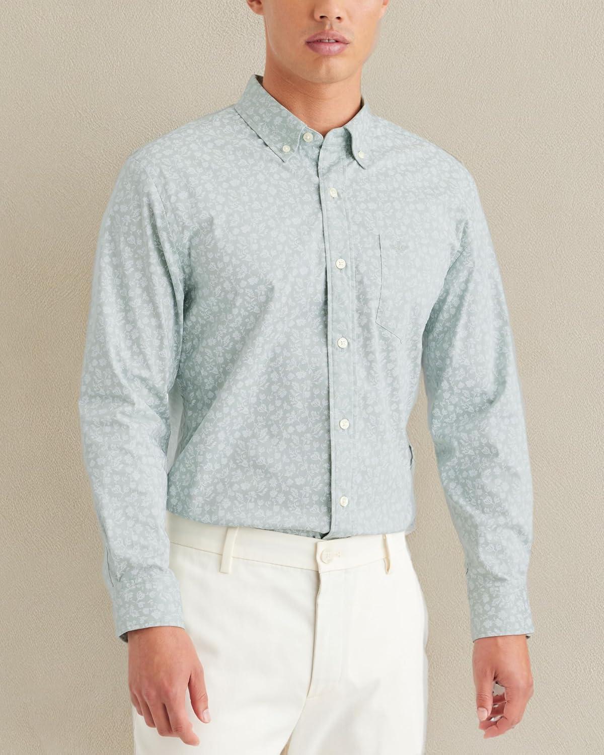 Dockers Men’s Classic Fit Long Sleeve Signature Iron Free Shirt with Stain Defender(Pipa Harbor Grey)