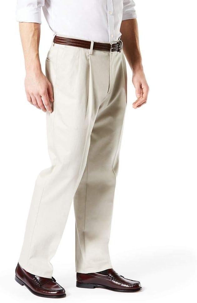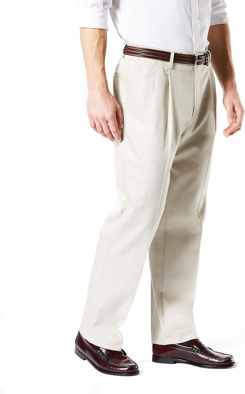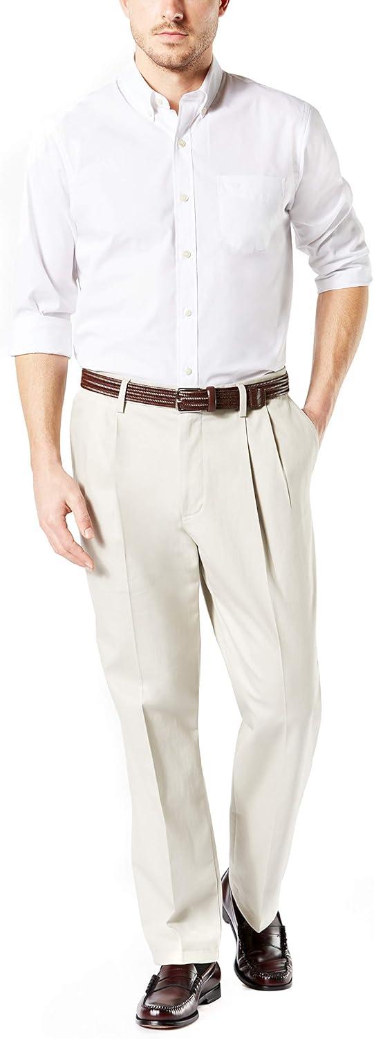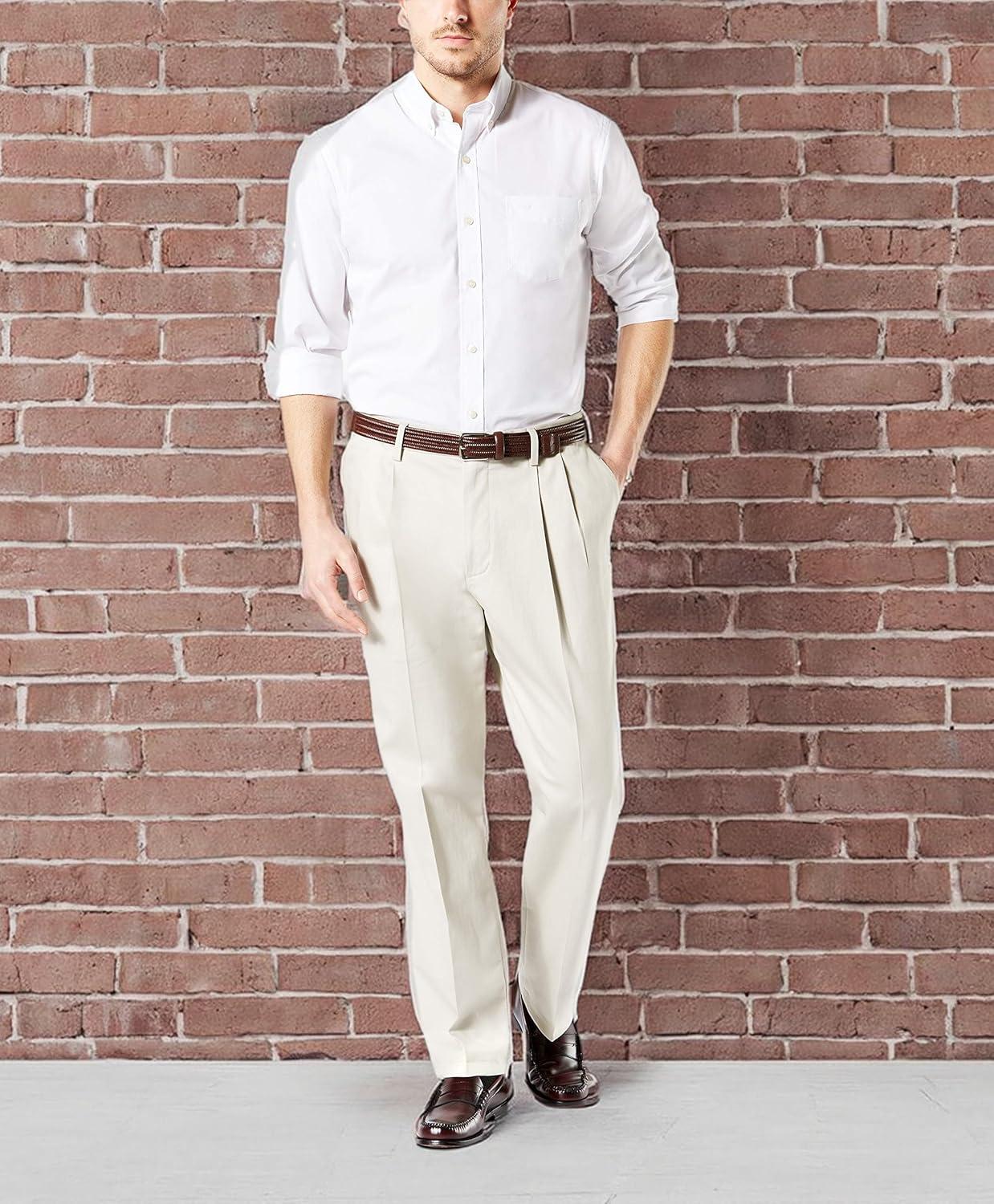 Dockers Men’s Classic Fit Signature Lux Cotton Stretch Pants-Pleated (Regular and Big & Tall)(Cloud)