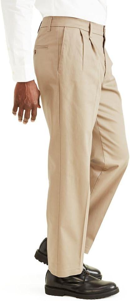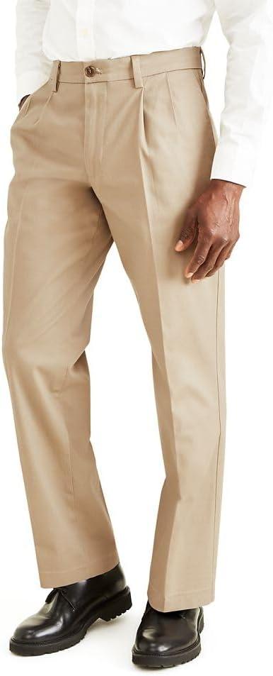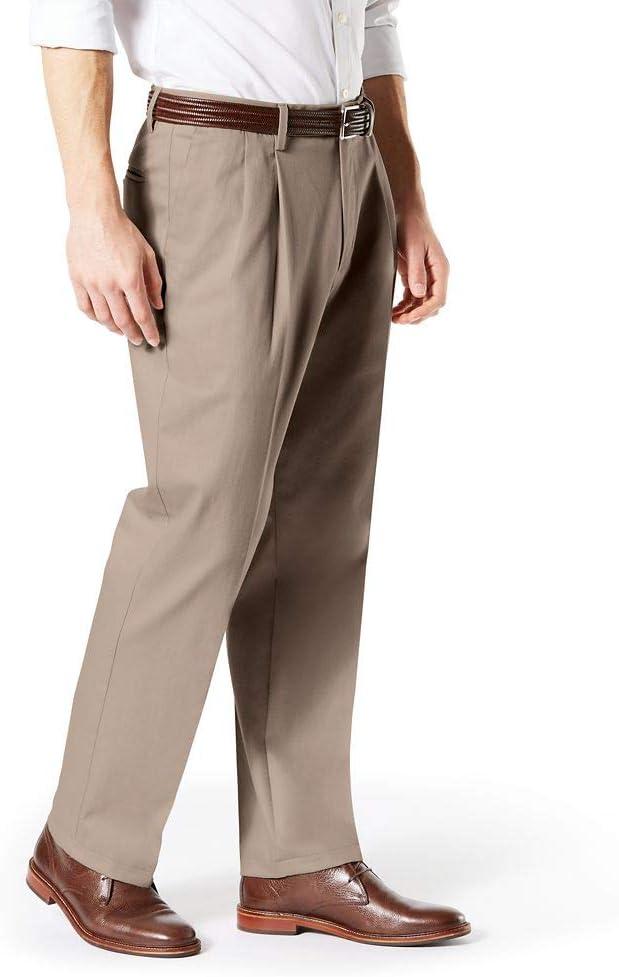 Dockers Men’s Classic Fit Signature Lux Cotton Stretch Pants-Pleated (Regular and Big & Tall)(Timberwolf)