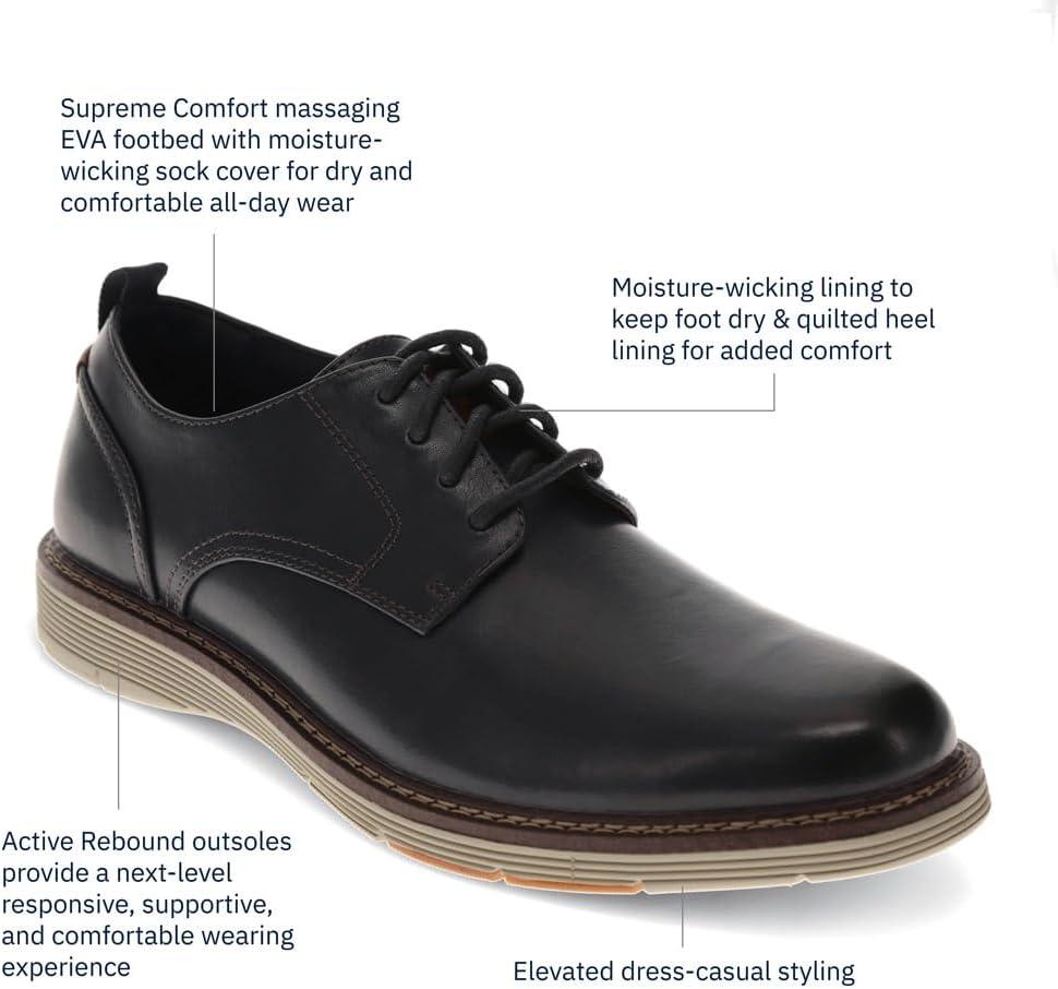 When it comes time to step into the boardroom or head out for that date you’ve been dreaming of, do you have everything you need to complete your look? The Easedale Oxfords are here to elevate and refine any dress-casual outfit you have planned. The synthetic leather uppers and detailed stitching are coupled with a sleek, lightweight outsole and timeless Oxford silhouette to bring you a shoe that seamlessly pairs with any attire, from slacks to jeans. Designed for style and built for comfort, these men’s shoes feature Dockers' new Active Rebound technology and Supreme Comfort footbed, complete with microfiber lining and moisture-wicking sock cover, ensuring you have the comfort and support needed to put your best foot forward. With the comfort of a sneaker and the polished style of an Oxford, the Easedale is everything you need to elevate any dress-casual look.