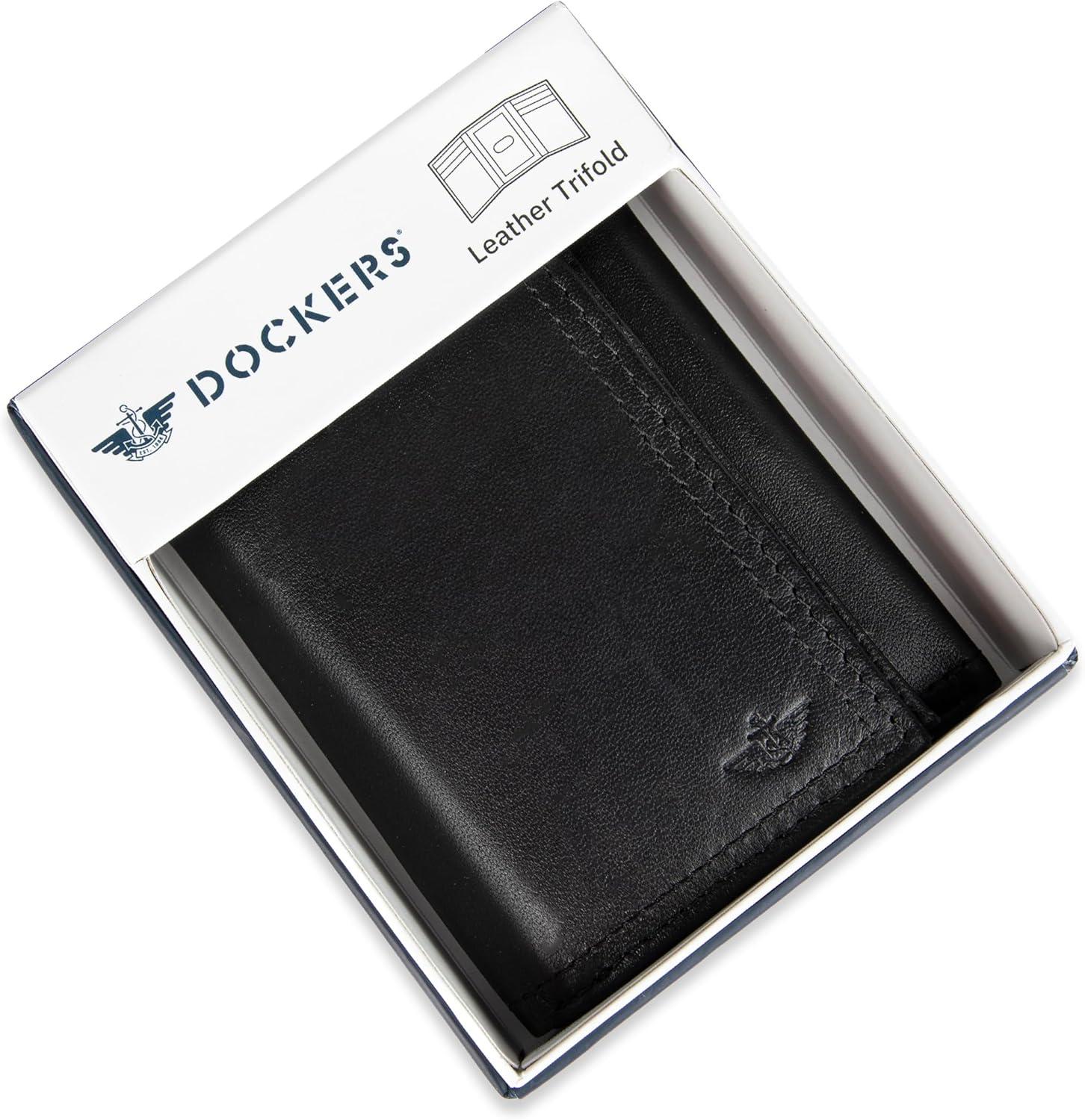 DOCKERS Men’s Extra Capacity Slim Profile Trifold Wallet with Multiple Card Slots and ID Window(Black Xcap)