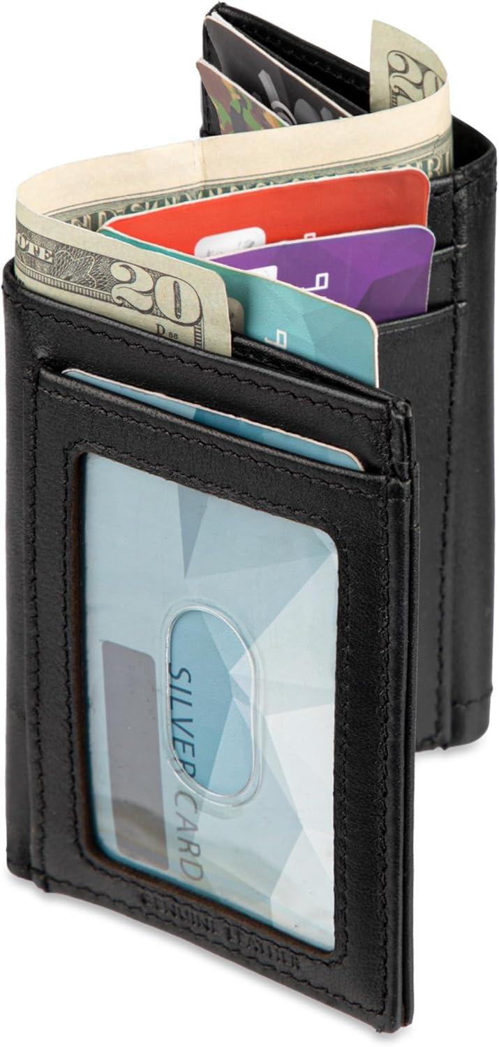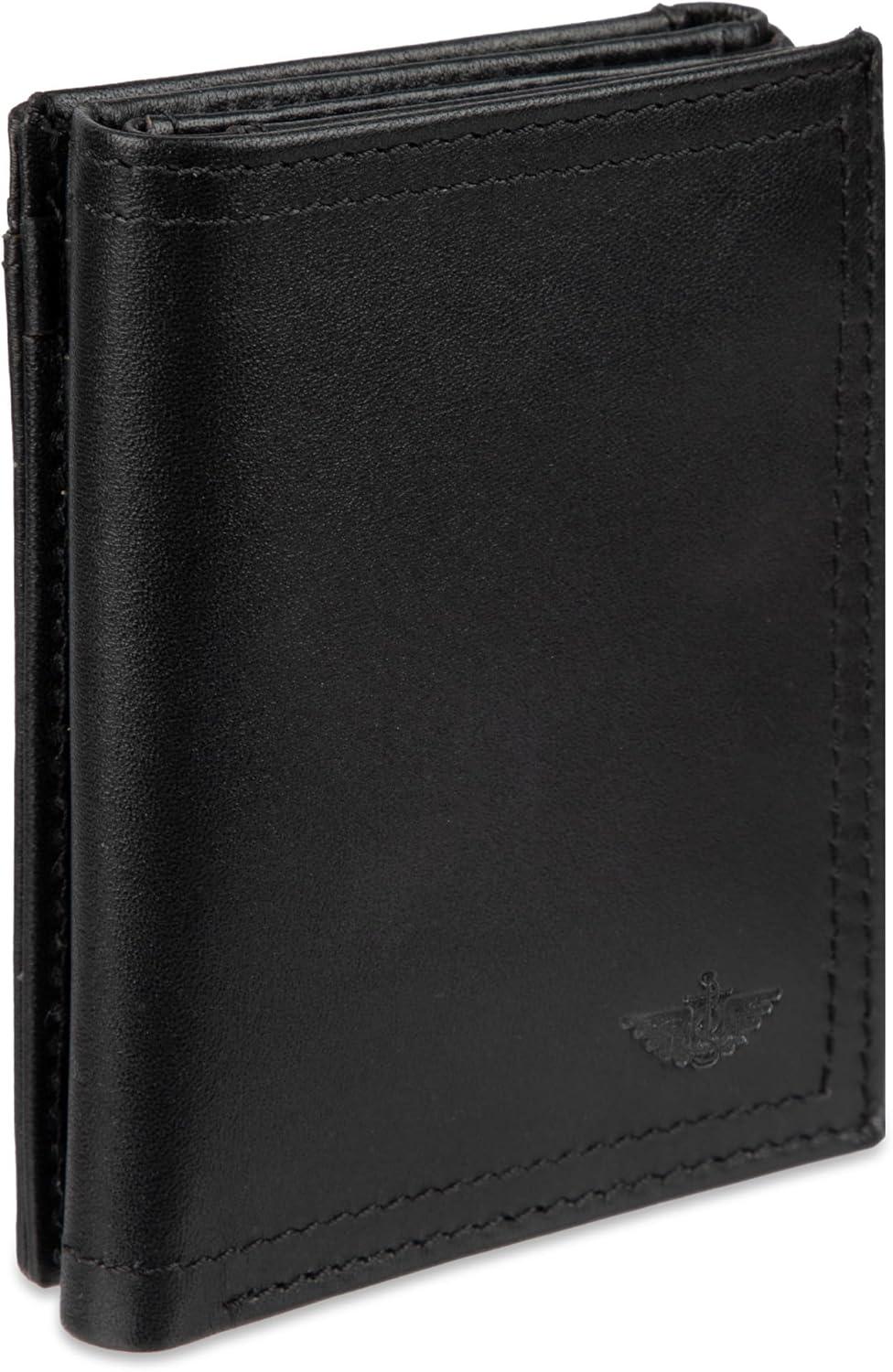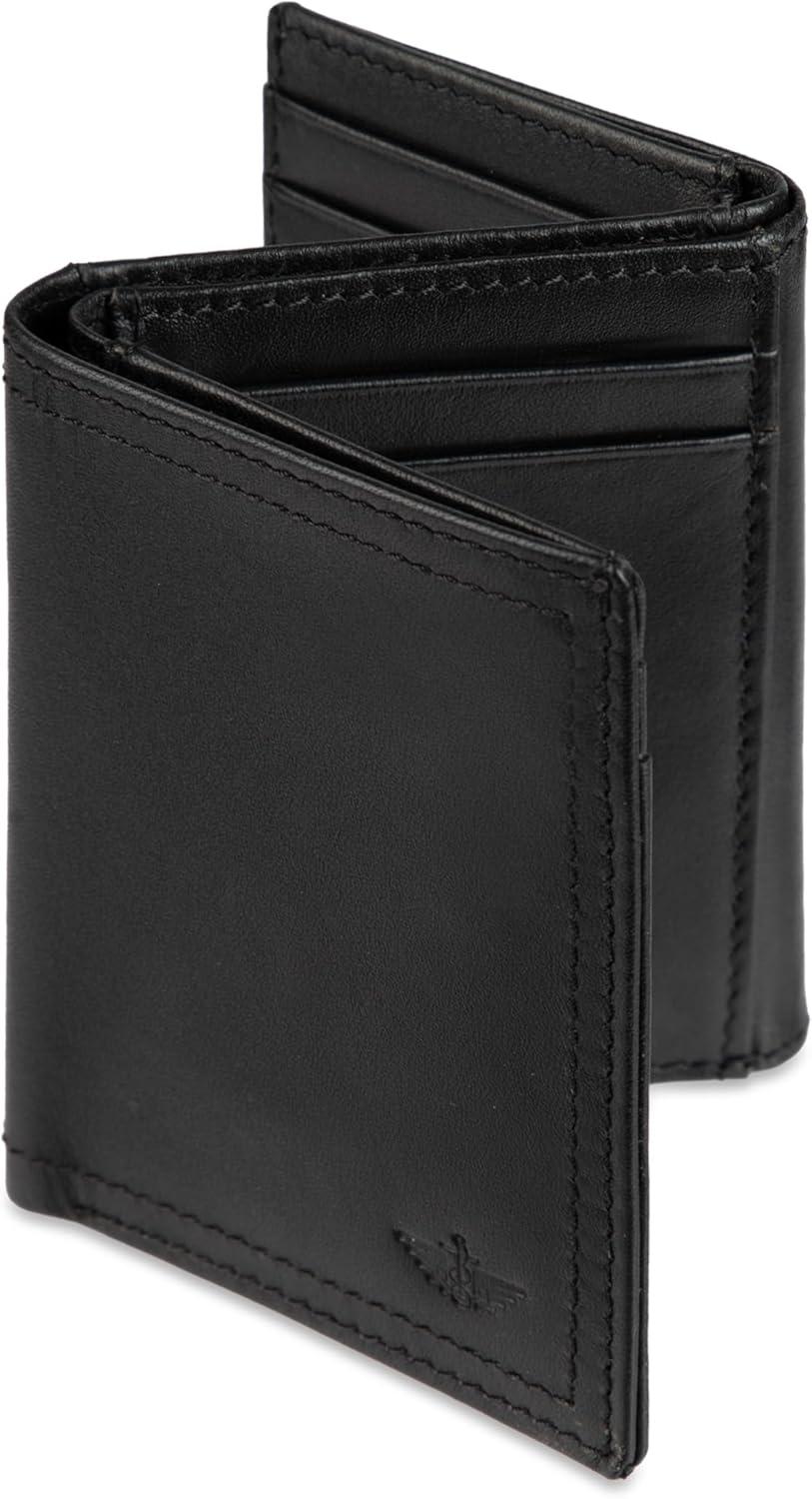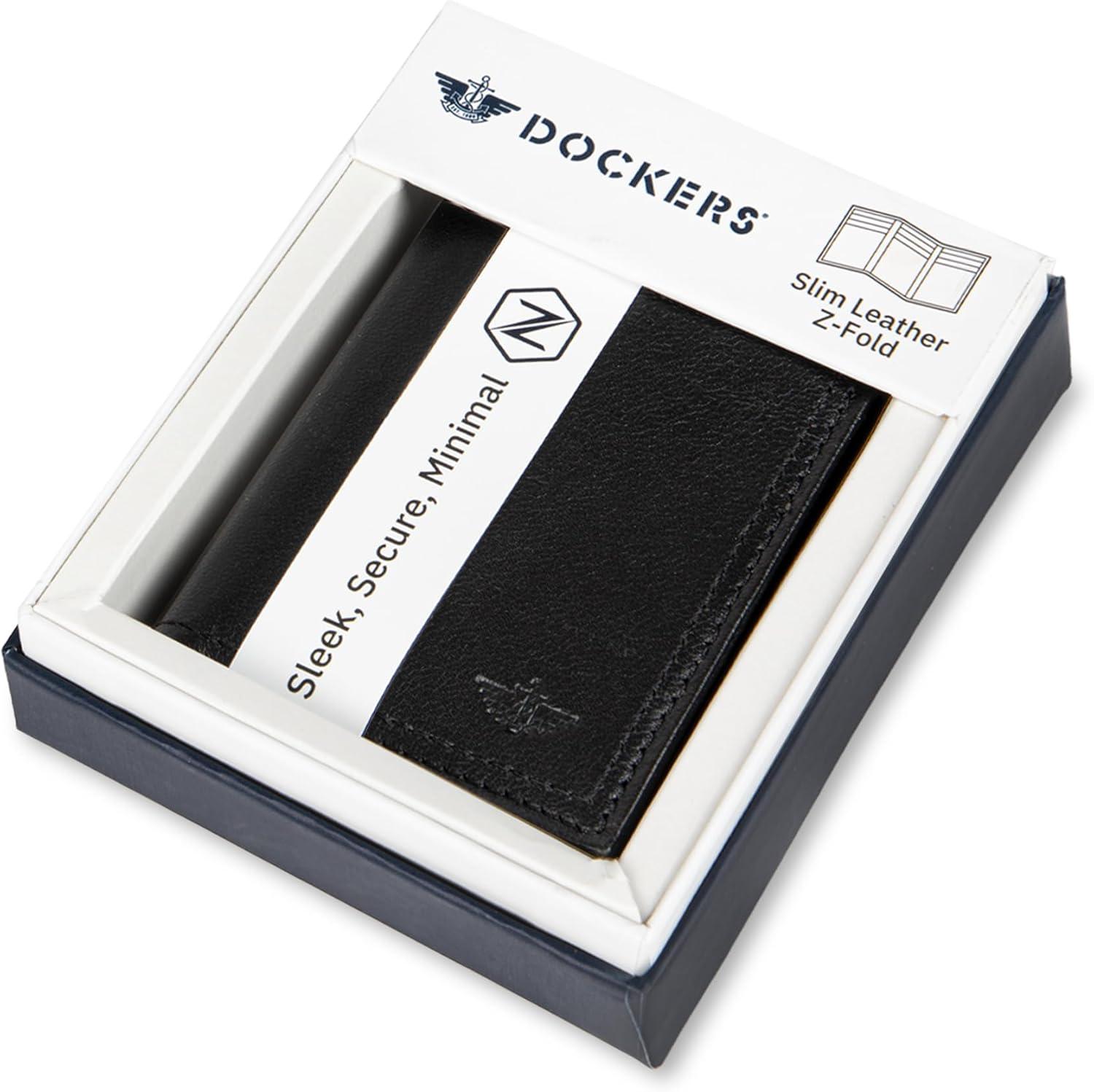 DOCKERS Men’s Extra Capacity Slim Profile Trifold Wallet with Multiple Card Slots and ID Window(Black Z-Fold)