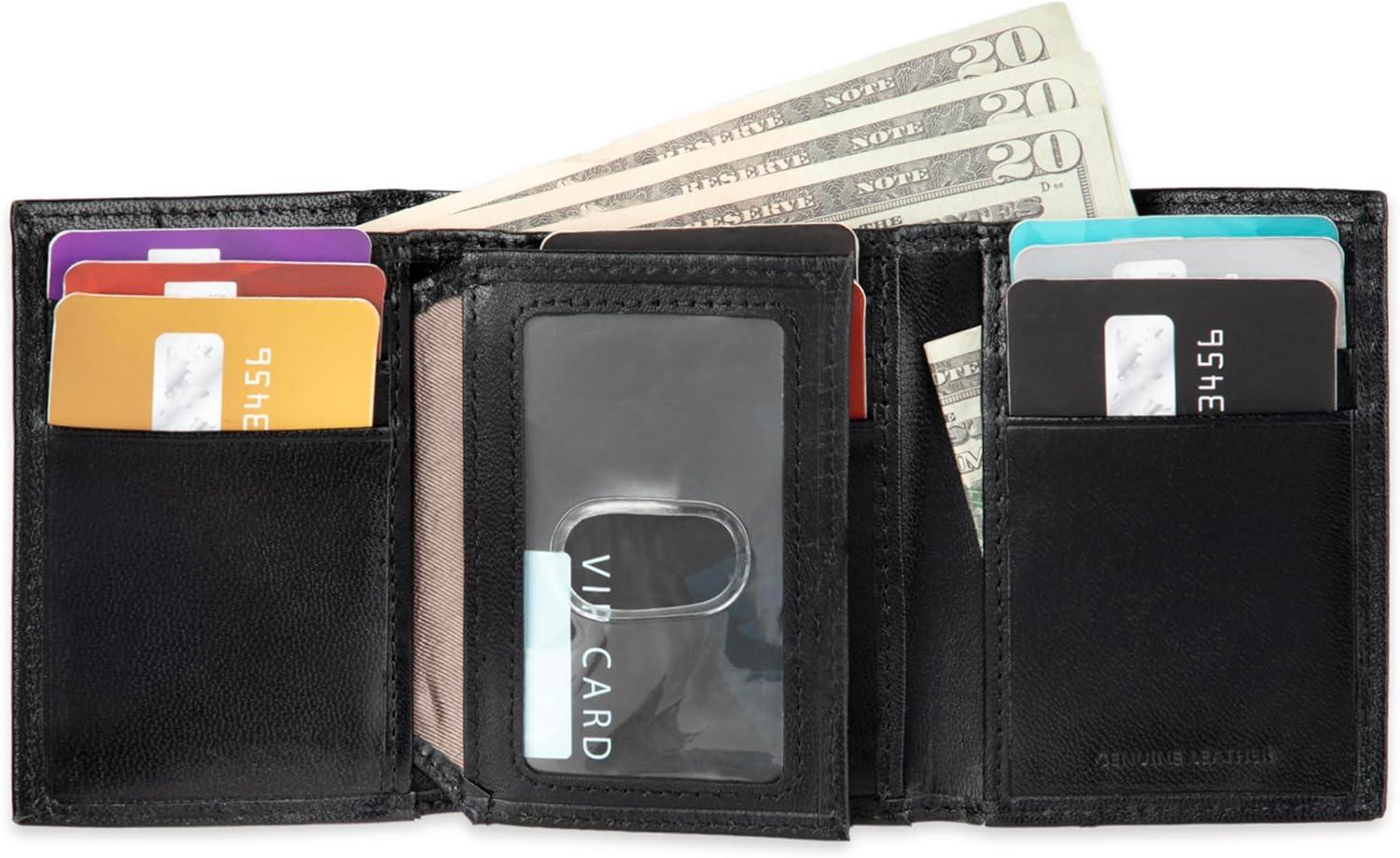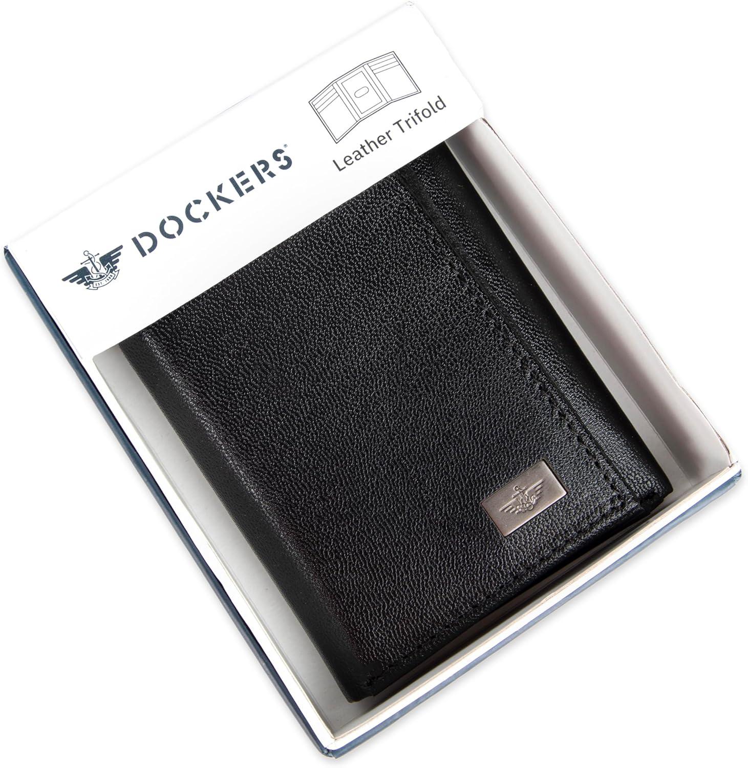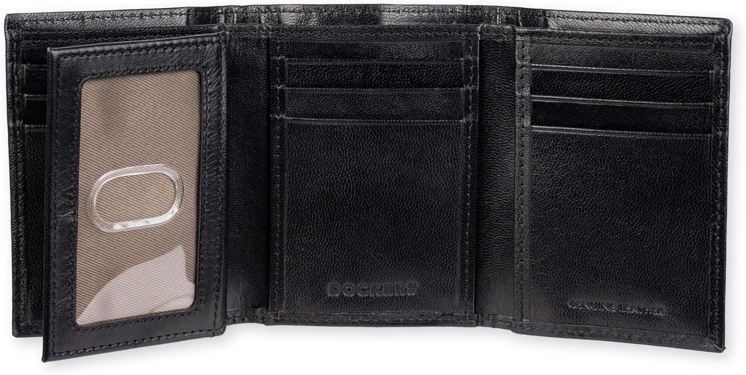 DOCKERS Men’s Extra Capacity Slim Profile Trifold Wallet with Multiple Card Slots and ID Window(True Black)