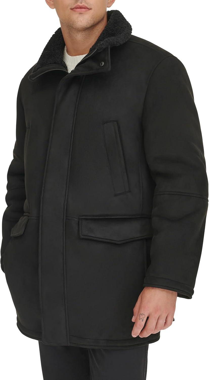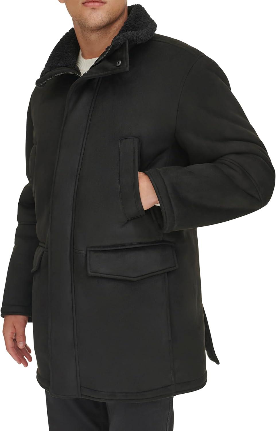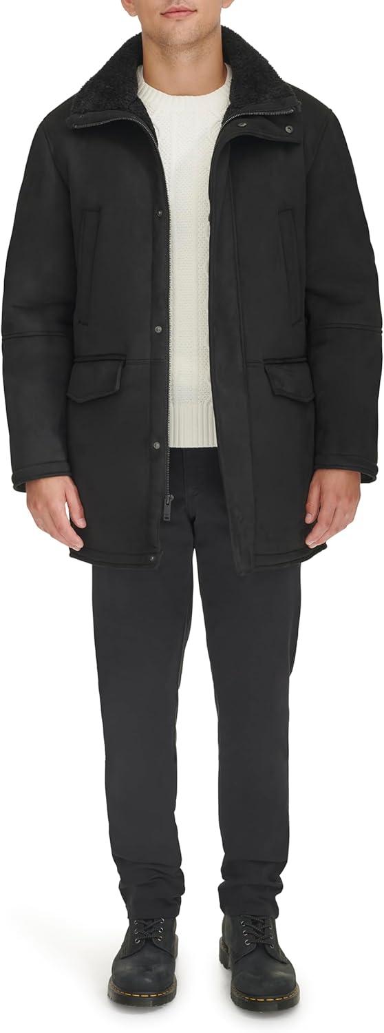 Dockers Men’s Faux Shearling Walking Coat, Black