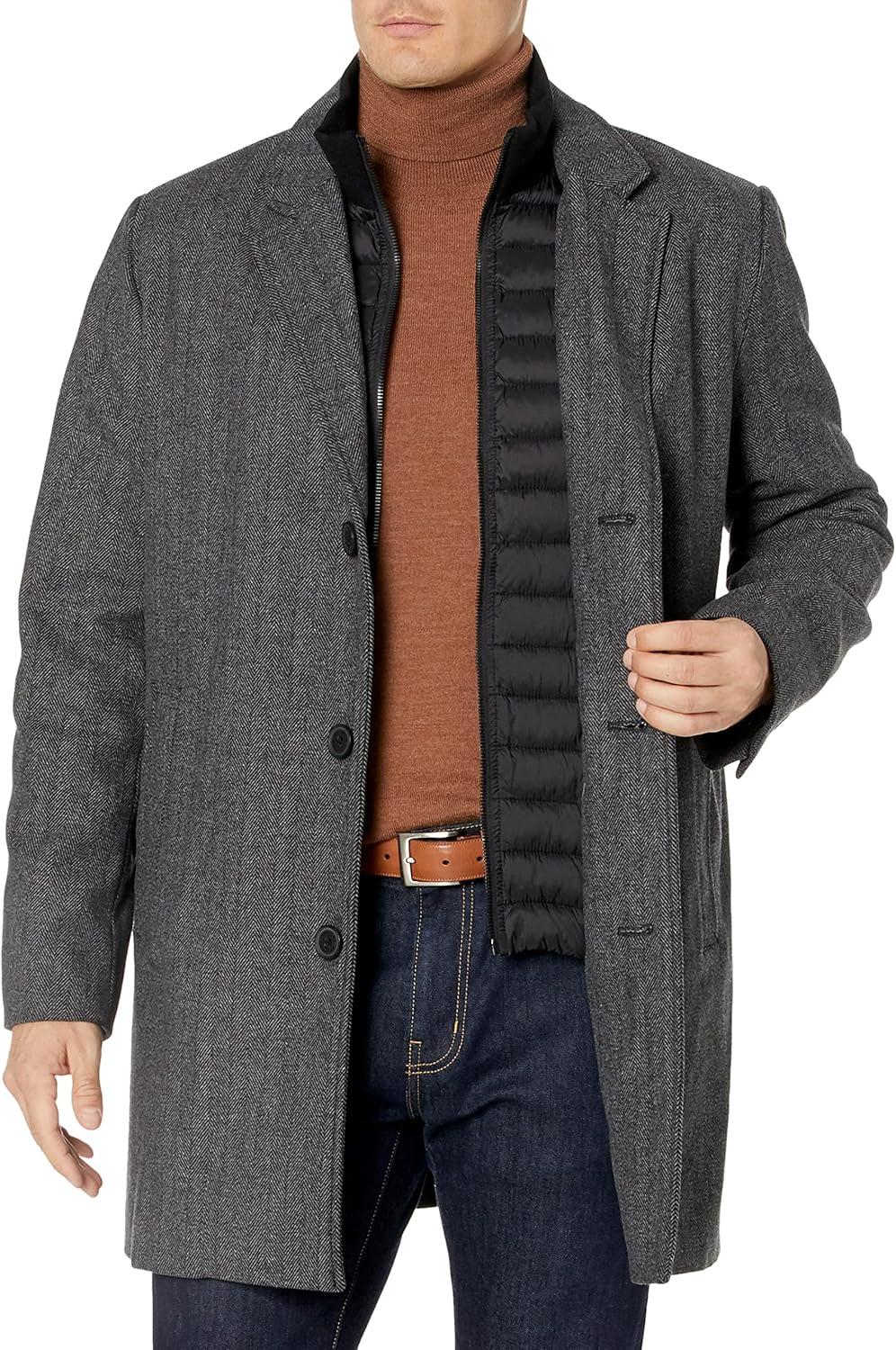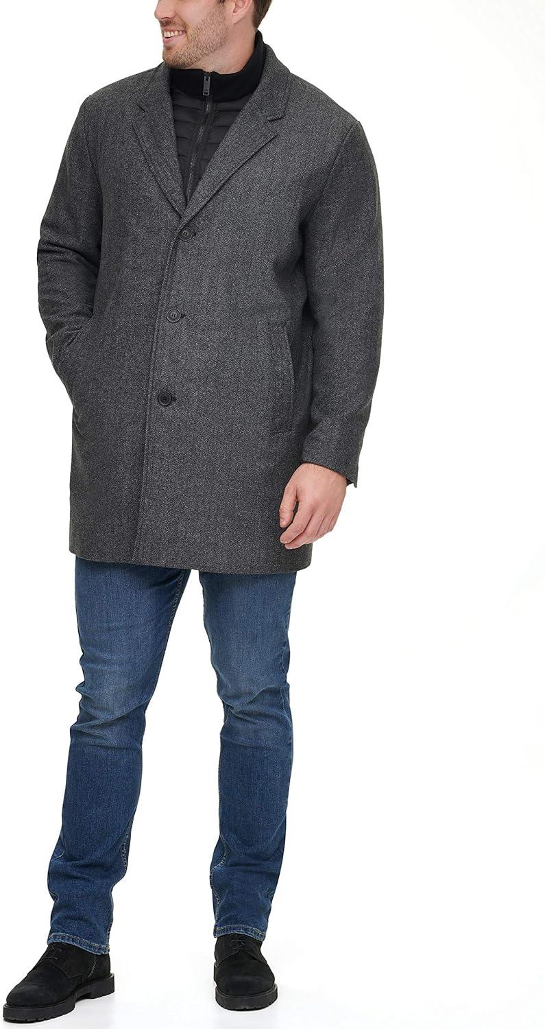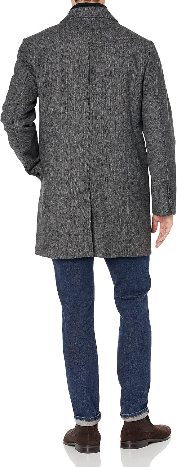 DOCKERS mens Henry Wool Blend Top Coat (Regular and Big & Tall Sizes)(Charcoal Herringbone)