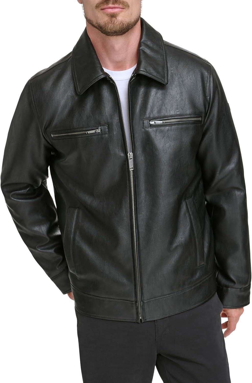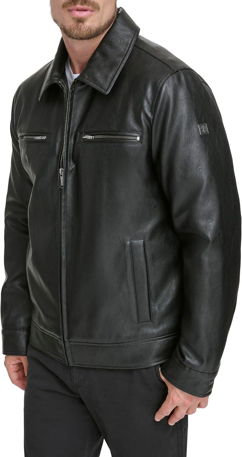 DOCKERS mens James Faux Leather Jacket(Black Modern Zip)