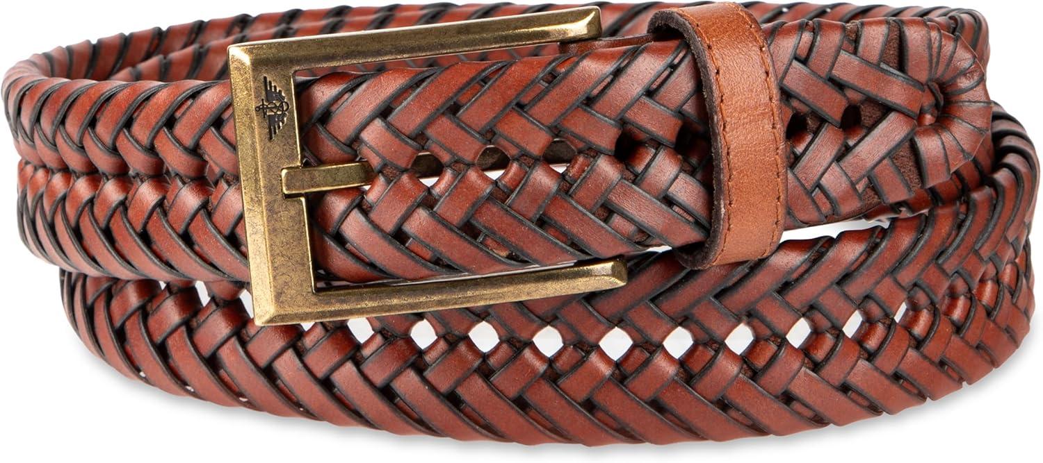 Dockers Men’s Leather Braided Fully Adjustable Belt(Tan Glazed)