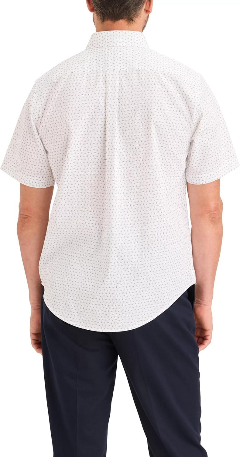 DOCKERS Mens Men’s Signature Shirt Short Sleeve Classic Fit with Stain Defender®(Cass Lucent White Print)