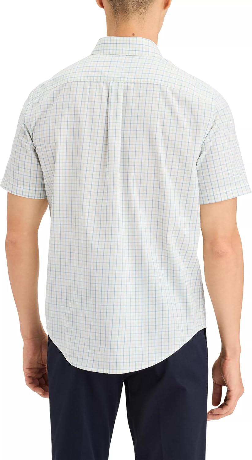 DOCKERS Mens Men’s Signature Shirt Short Sleeve Classic Fit with Stain Defender®(Kittridge Lucent White Plaid)