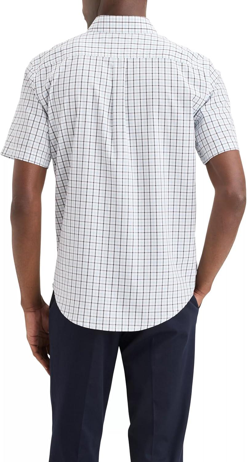 DOCKERS Mens Men’s Signature Shirt Short Sleeve Classic Fit with Stain Defender®(Kittridge Lucent White Tourmaline Plaid)