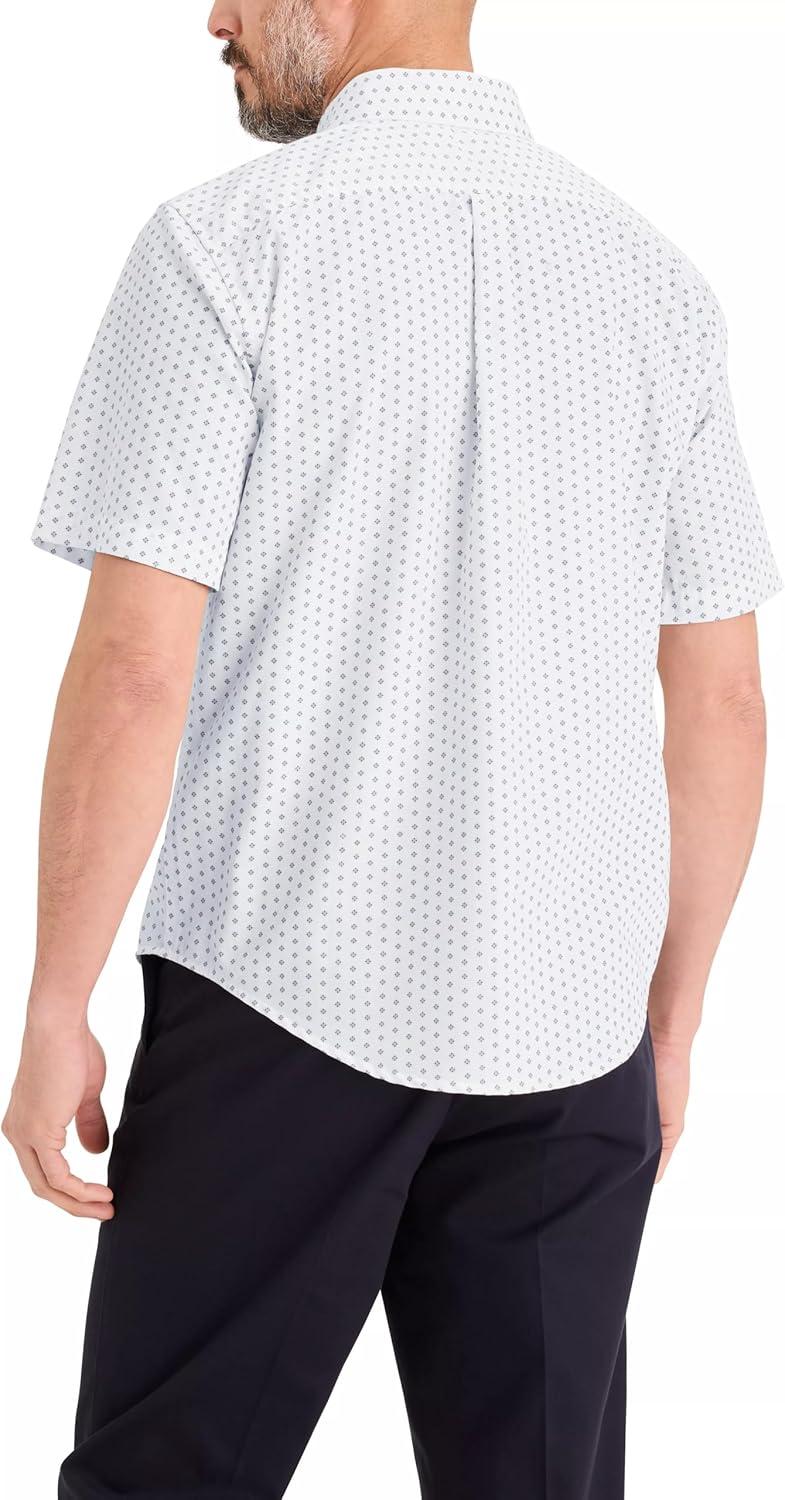 DOCKERS Mens Men’s Signature Shirt Short Sleeve Classic Fit with Stain Defender®(Lucent White Print)
