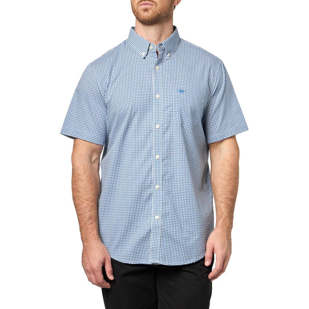 DOCKERS Mens Men’s Signature Shirt Short Sleeve Classic Fit with Stain Defender®(Mesilla Delft Plaid)