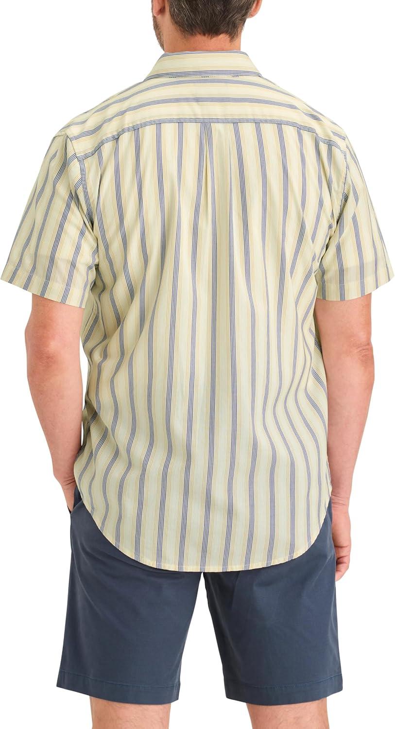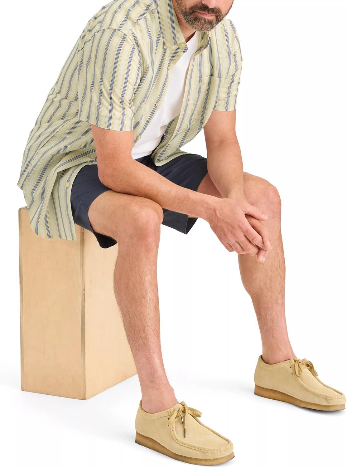 DOCKERS Mens Men’s Signature Shirt Short Sleeve Classic Fit with Stain Defender®(Sambria Dusty Yellow Stripe)