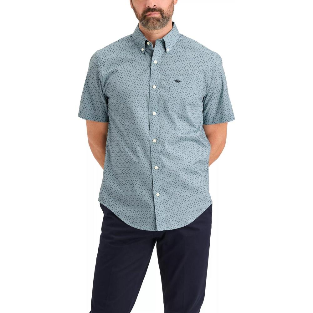 DOCKERS Mens Men’s Signature Shirt Short Sleeve Classic Fit with Stain Defender®(Serra Tourmaline Print)