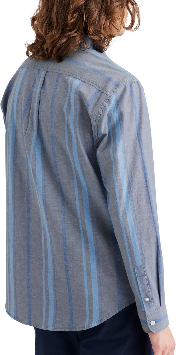 Dockers Men’s Regular Fit Long Sleeve Casual Shirt (Regular and Big & Tall)(Dune Oxford Vintage Indigo Stripe)