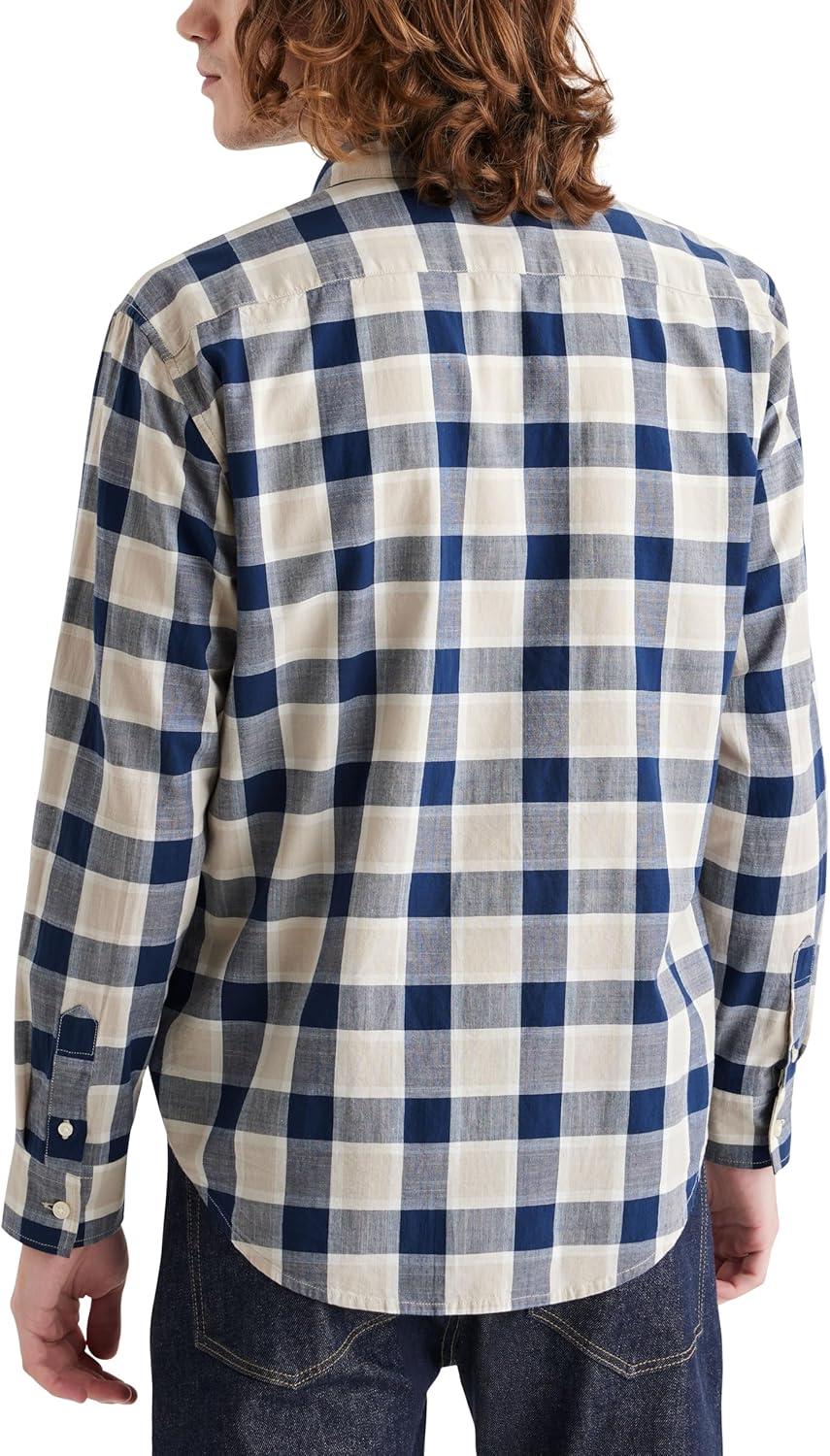 Dockers Men’s Regular Fit Long Sleeve Casual Shirt (Regular and Big & Tall)(Vintage Indigo Plaid)