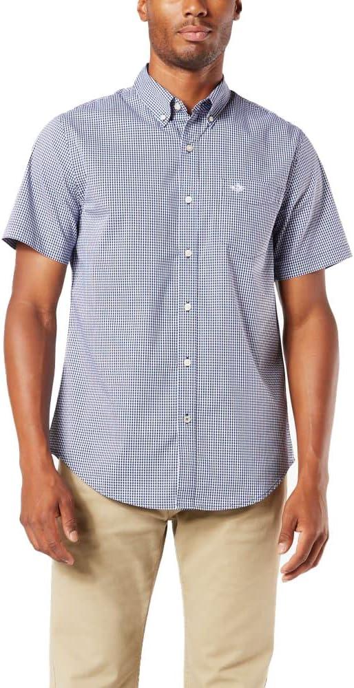 DOCKERS Mens Regular Fit Short Sleeve Casual Shirt (Standard and Big & Tall)(Medieval Blue Plaid)