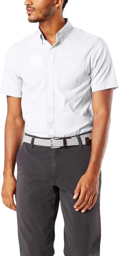 DOCKERS Mens Regular Fit Short Sleeve Casual Shirt (Standard and Big & Tall)(Paper White)