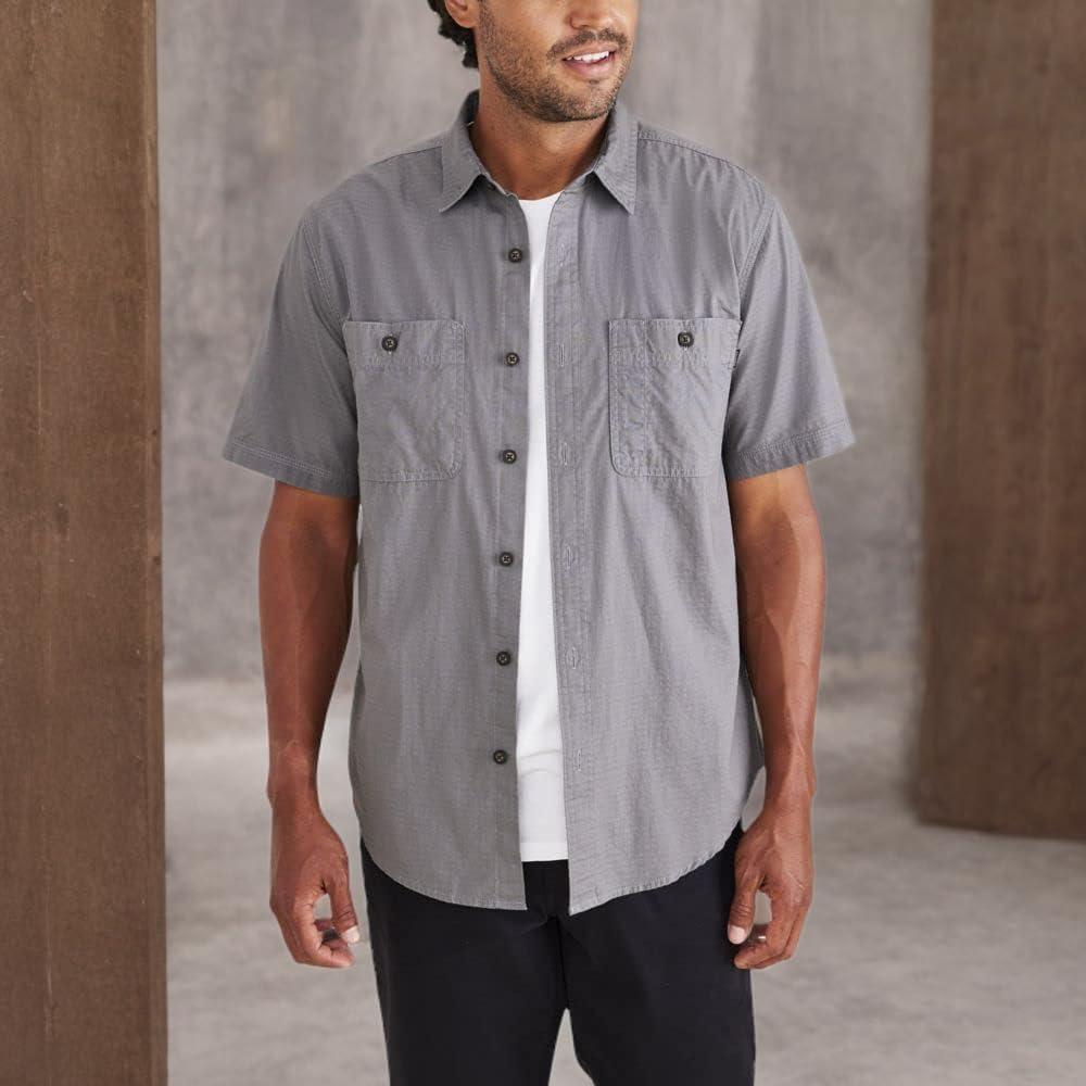 Dockers Men’s Regular Fit Short Sleeve Utility Shirt(Car Park Grey – Solid (Rip Stop))