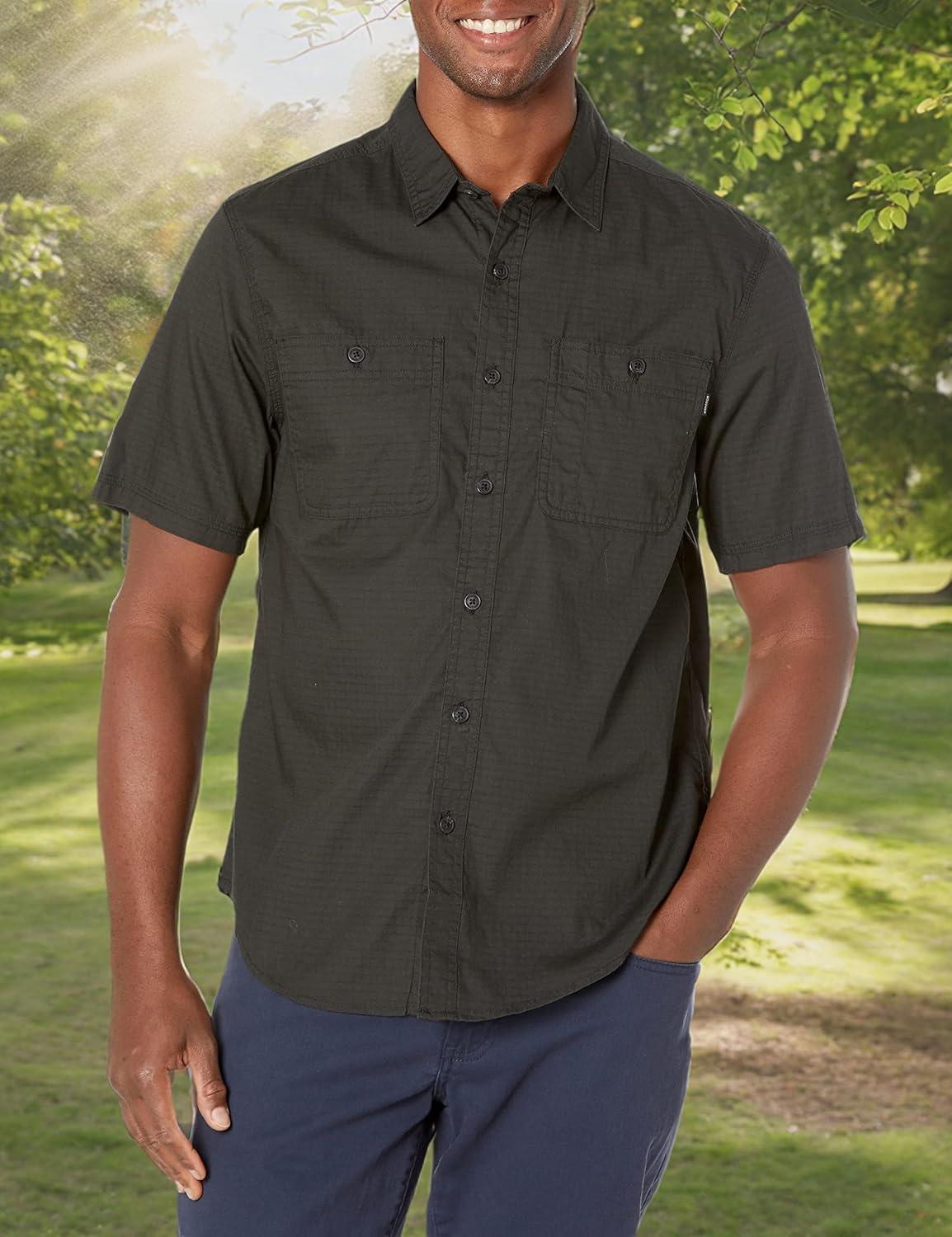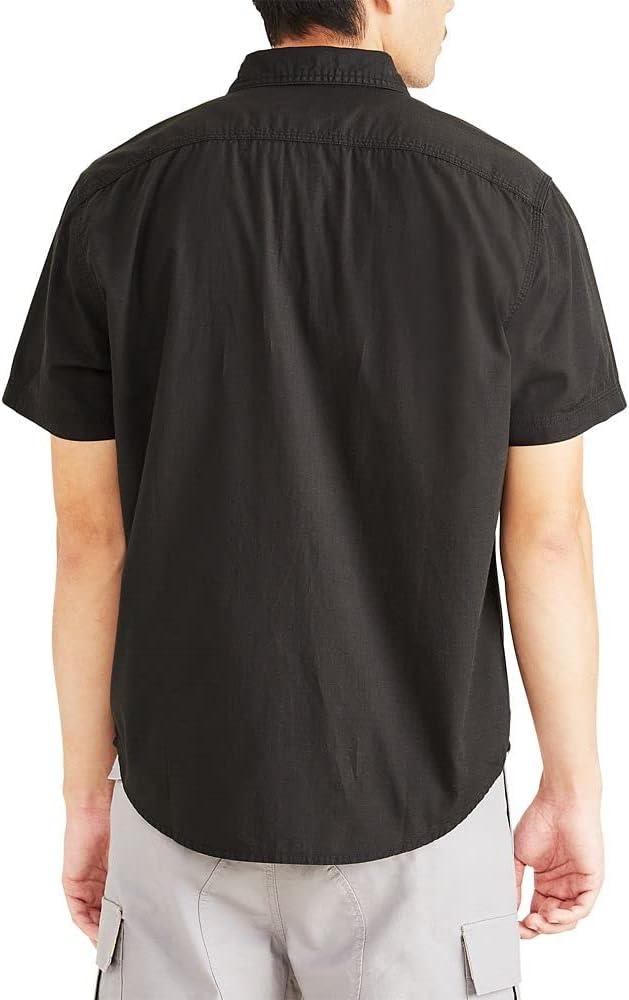 Dockers Men’s Regular Fit Short Sleeve Utility Shirt(Pirate Black – Solid (Rip Stop))