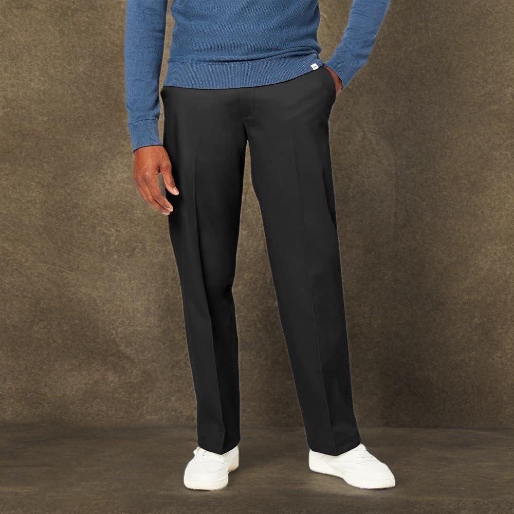 A best-in-class relaxed fit khakis with dress pant details. Cut for a straight fit from hip to ankle, these men's relaxed khaki pants are made for performance and all-day comfort. In addition, these relaxed fit khaki pants also have no wrinkle technology gives you a freshly pressed look around the clock and an individual fit waistband offers up to 1 inch.