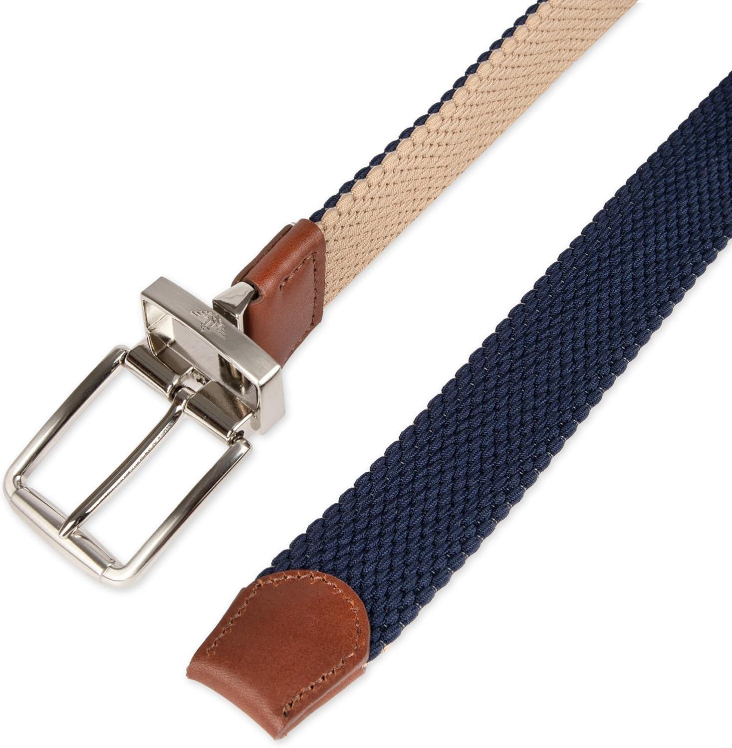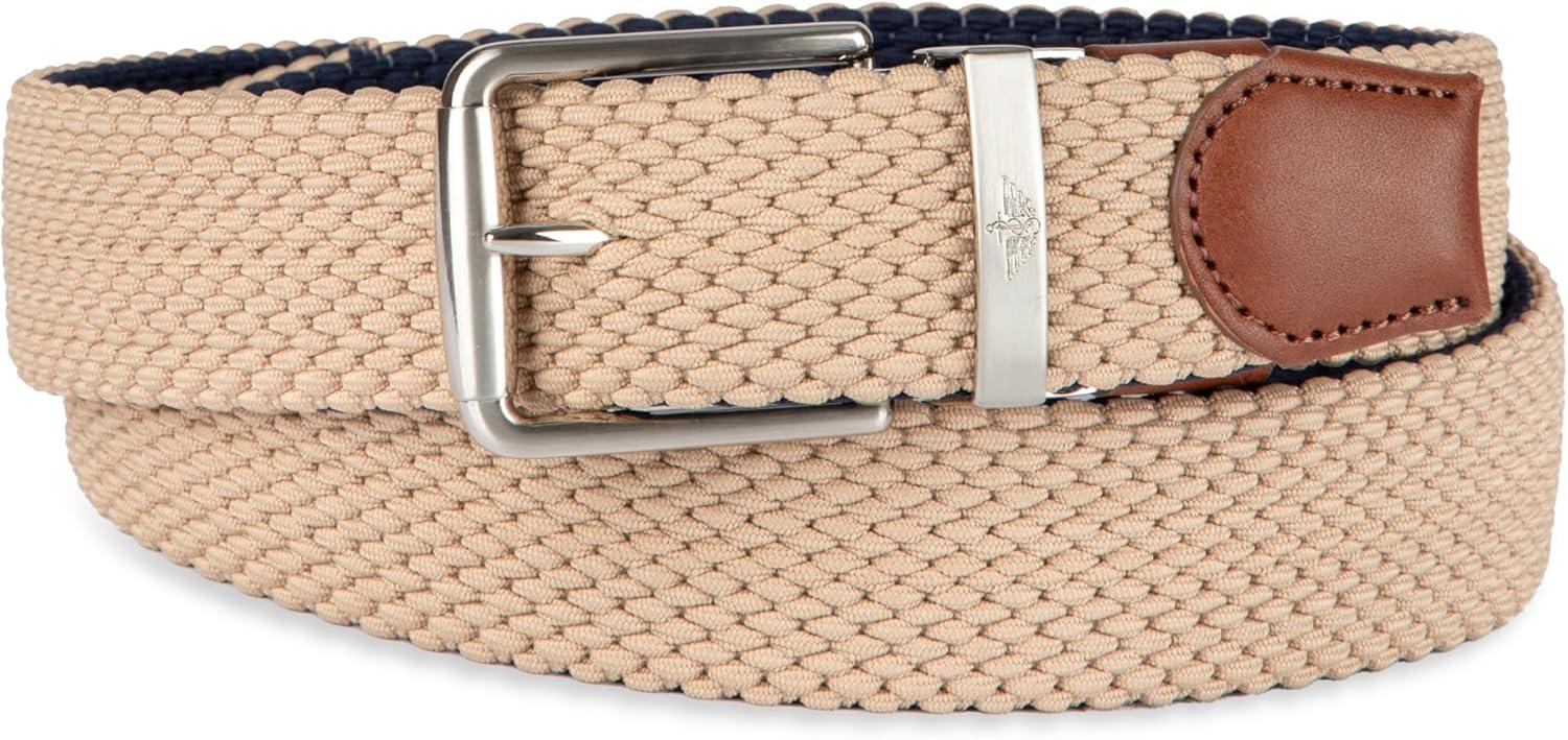 DOCKERS Men’s Reversible Stretch Fabric Belt – Spring/Summer Belt, Golf Belt(Khaki/Navy)
