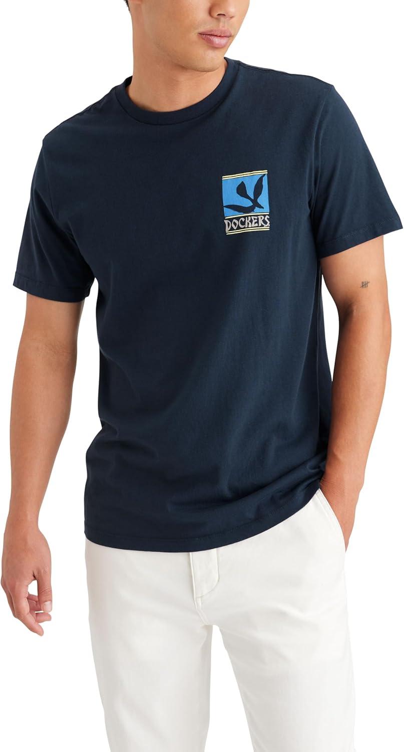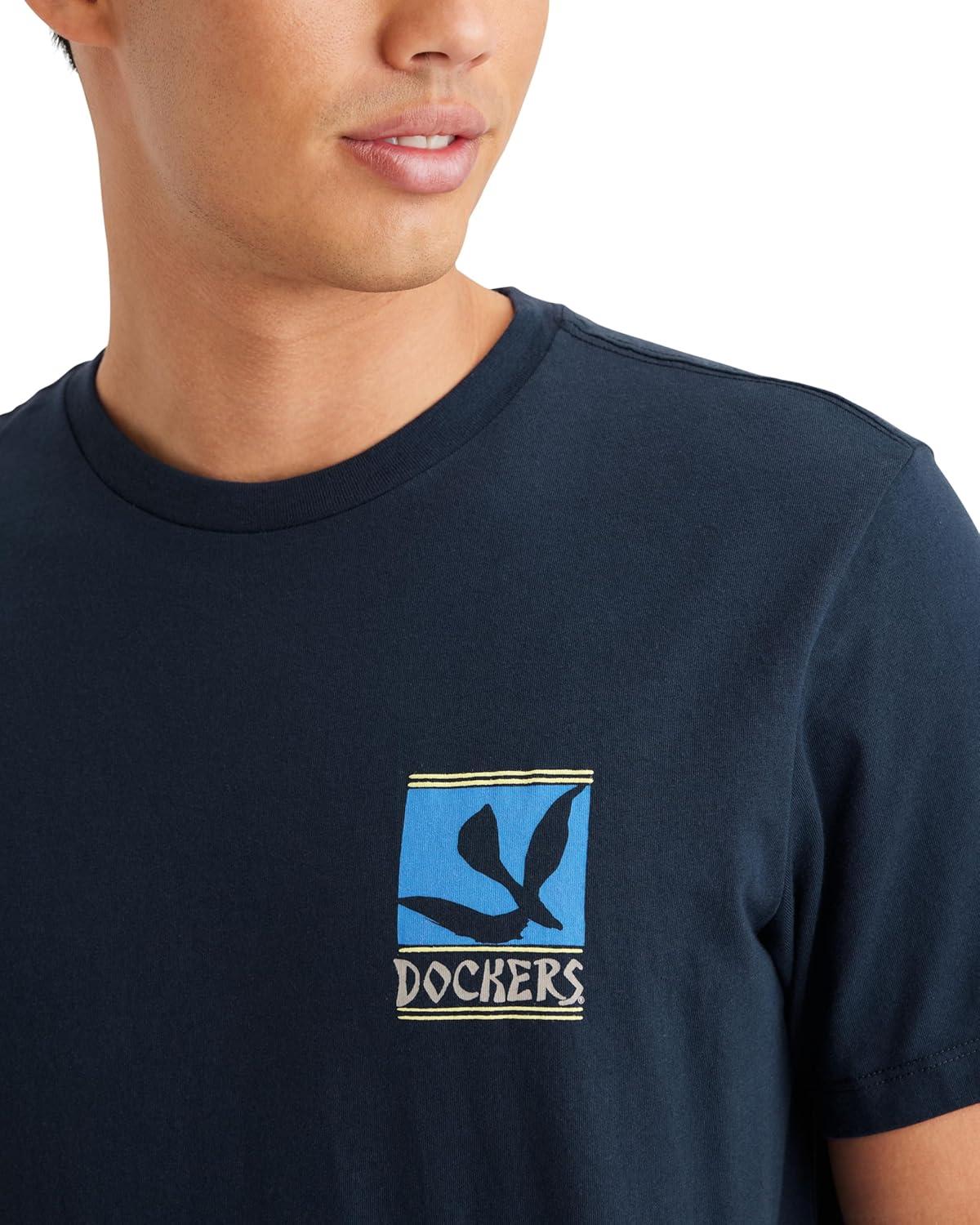 Dockers Mens Slim Fit Short Sleeve Graphic Tee Shirt(Bird and Whale Navy Blazer)