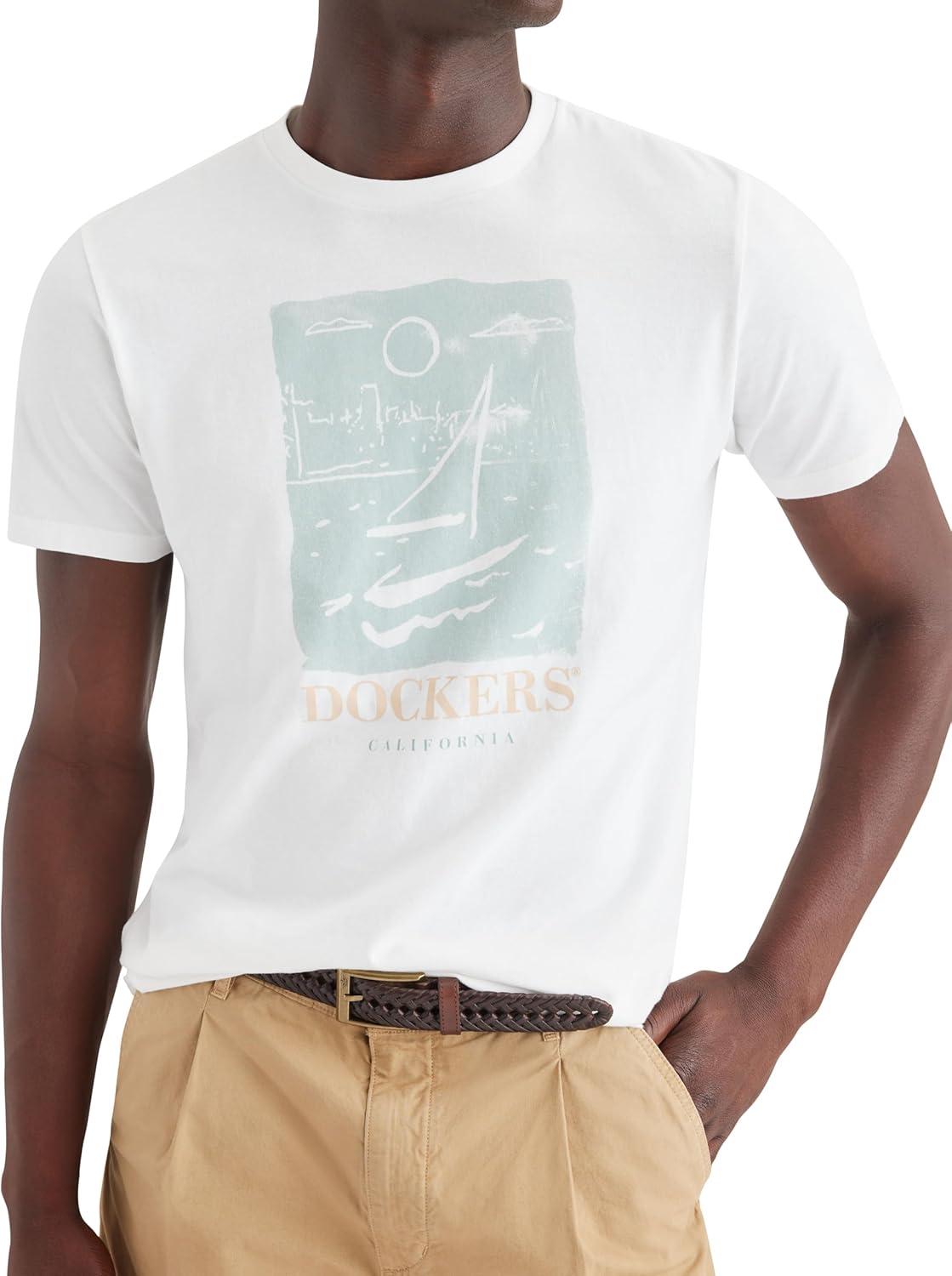 Dockers Mens Slim Fit Short Sleeve Graphic Tee Shirt(City By the Bay Lucent White)