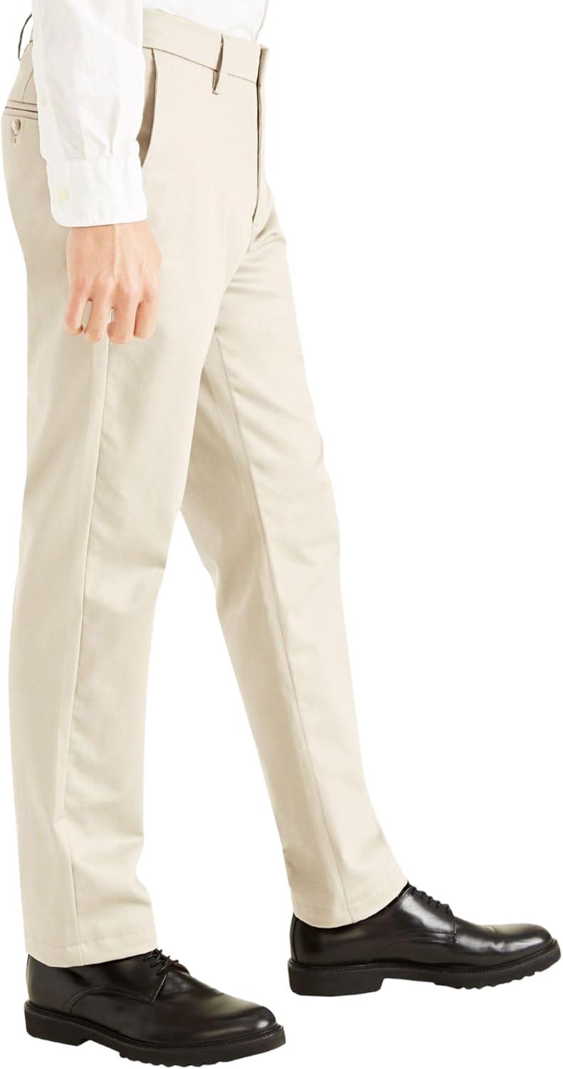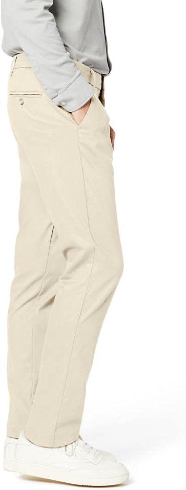 Manage your professional style in total comfort with Dockers men's slim fit khaki pants. Cut for a straight fit from hip to ankle, these stretch khaki pants are made for performance and all-day comfort. In addition, these straight leg khaki pants also have no wrinkle technology gives you a freshly pressed look around the clock and an individual fit waistband offers up to 1 inch.