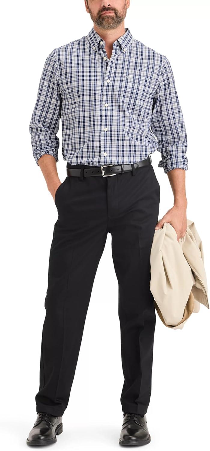 Dockers Men’s Supreme Flex Long Sleeve Button Up Shirt(Carmelo Lucent White Plaid)