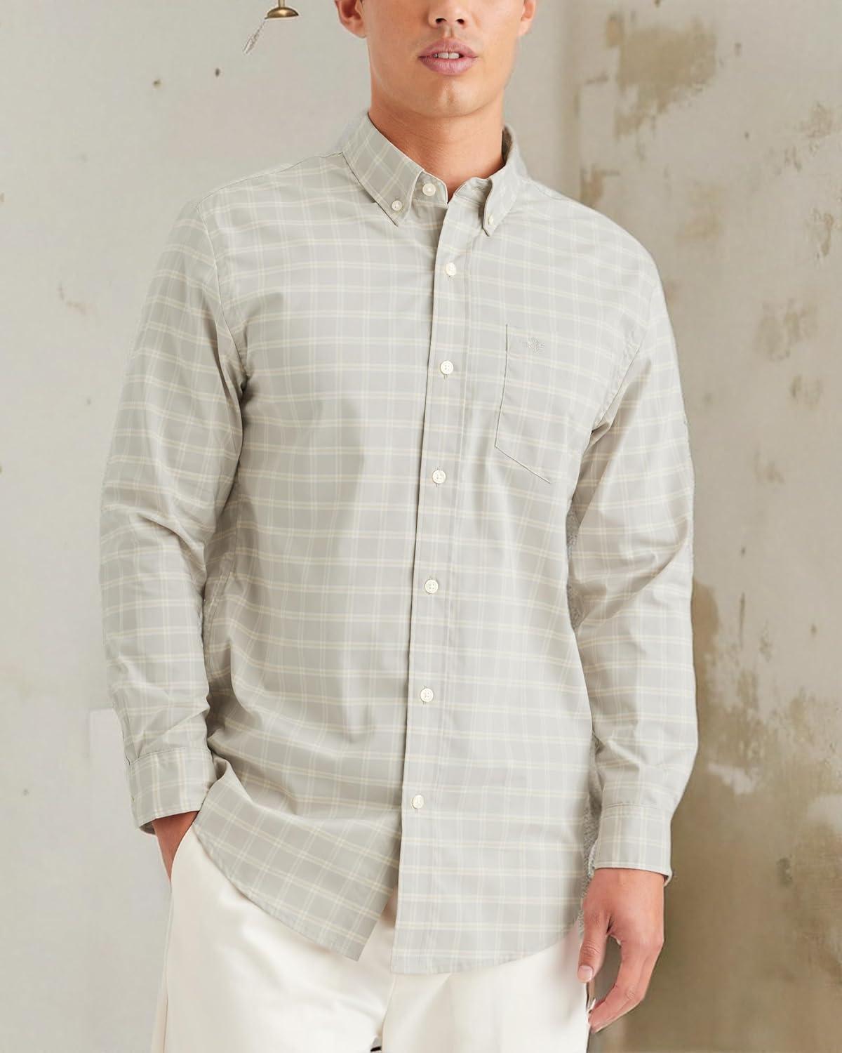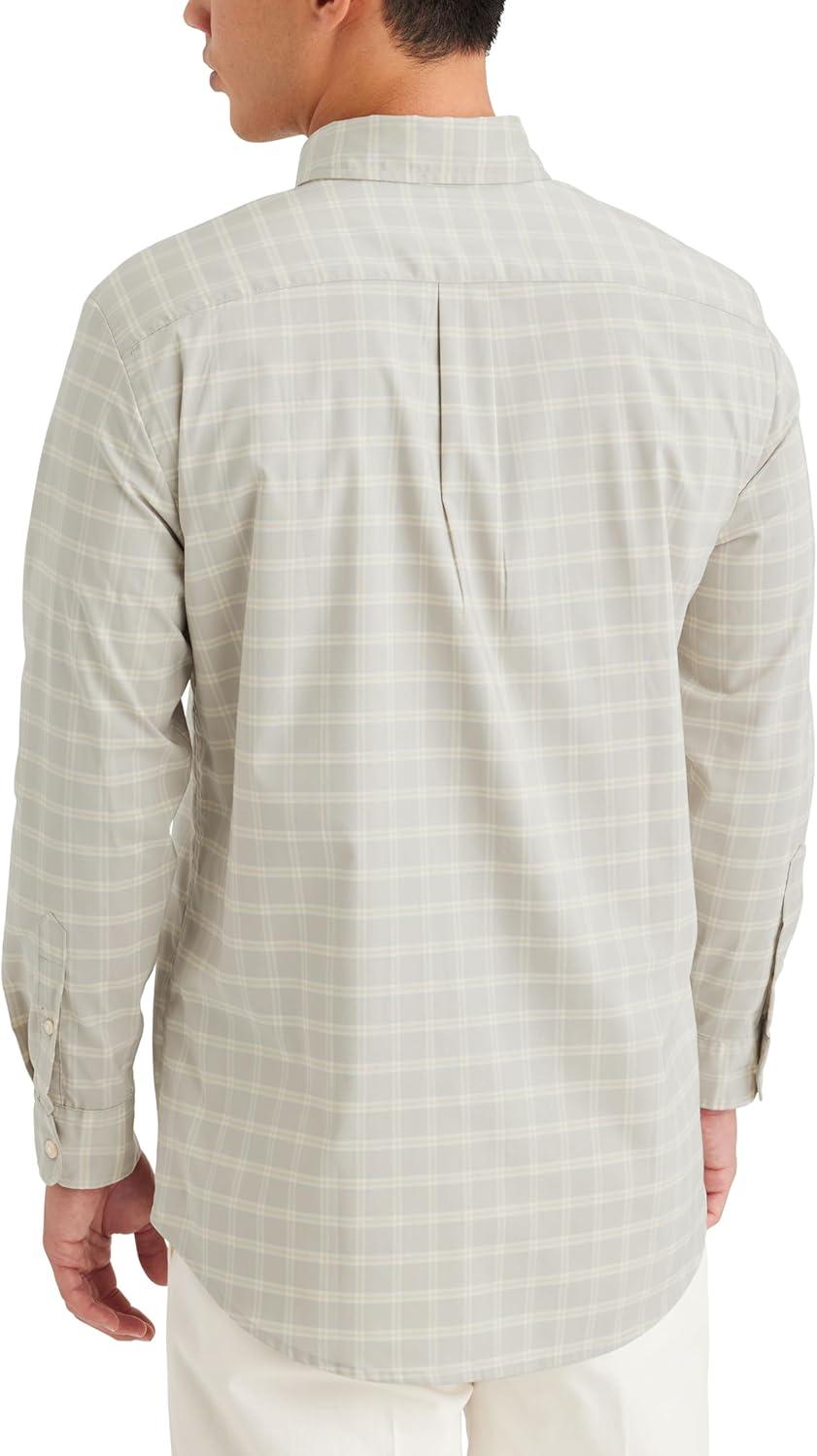 Dockers Men’s Supreme Flex Long Sleeve Button Up Shirt(Grey Yucca Grit Plaid)