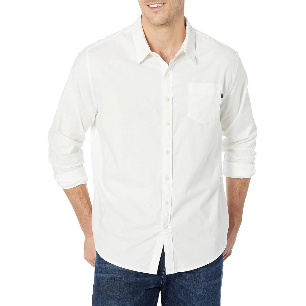 Dockers Men’s Supreme Flex Long Sleeve Button Up Shirt(Lucent White – Solid (Oxford))