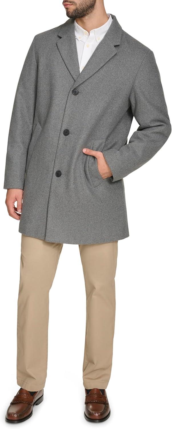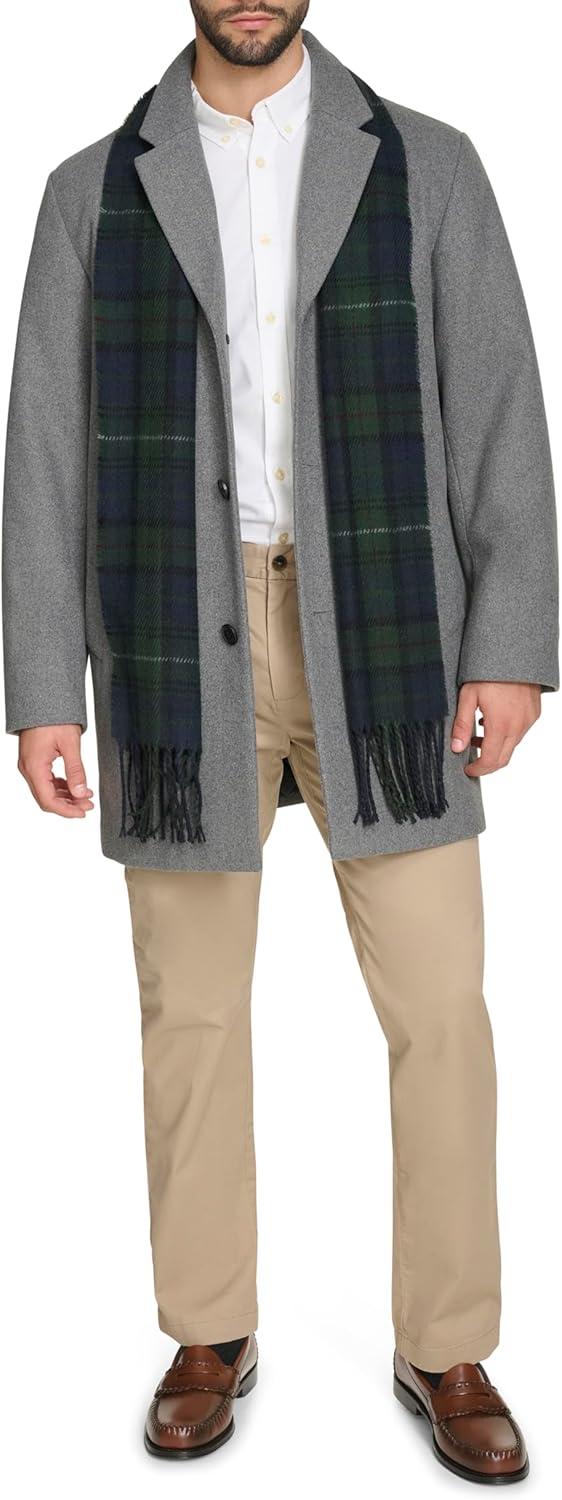 DOCKERS mens The Henry Wool Blend Top Coat(Light Grey With Scarf)