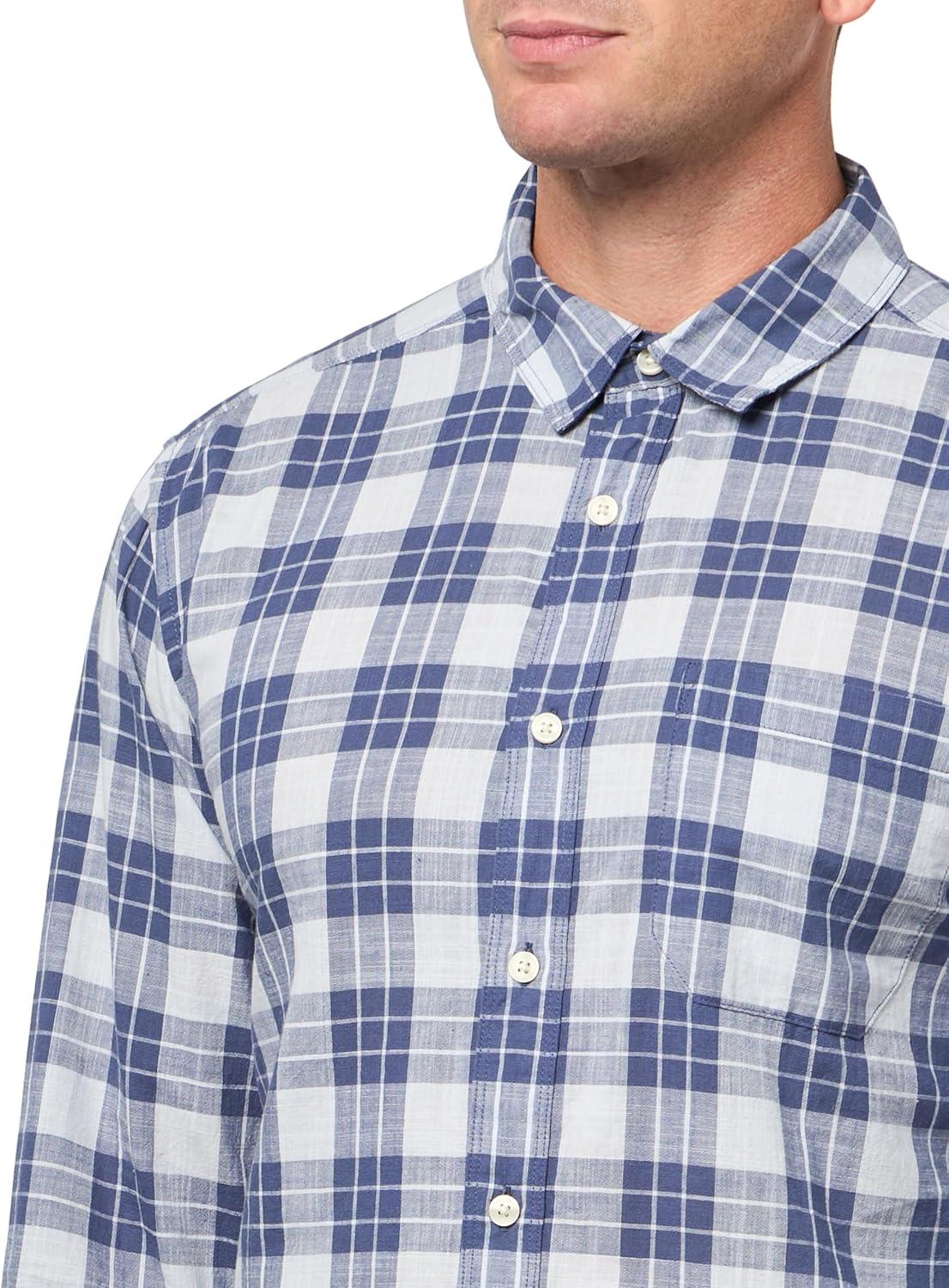 DOCKERS Men’s Ultimate Shirt Long Sleeve Regular Fit(Felice Slub Arctic Ice Plaid)