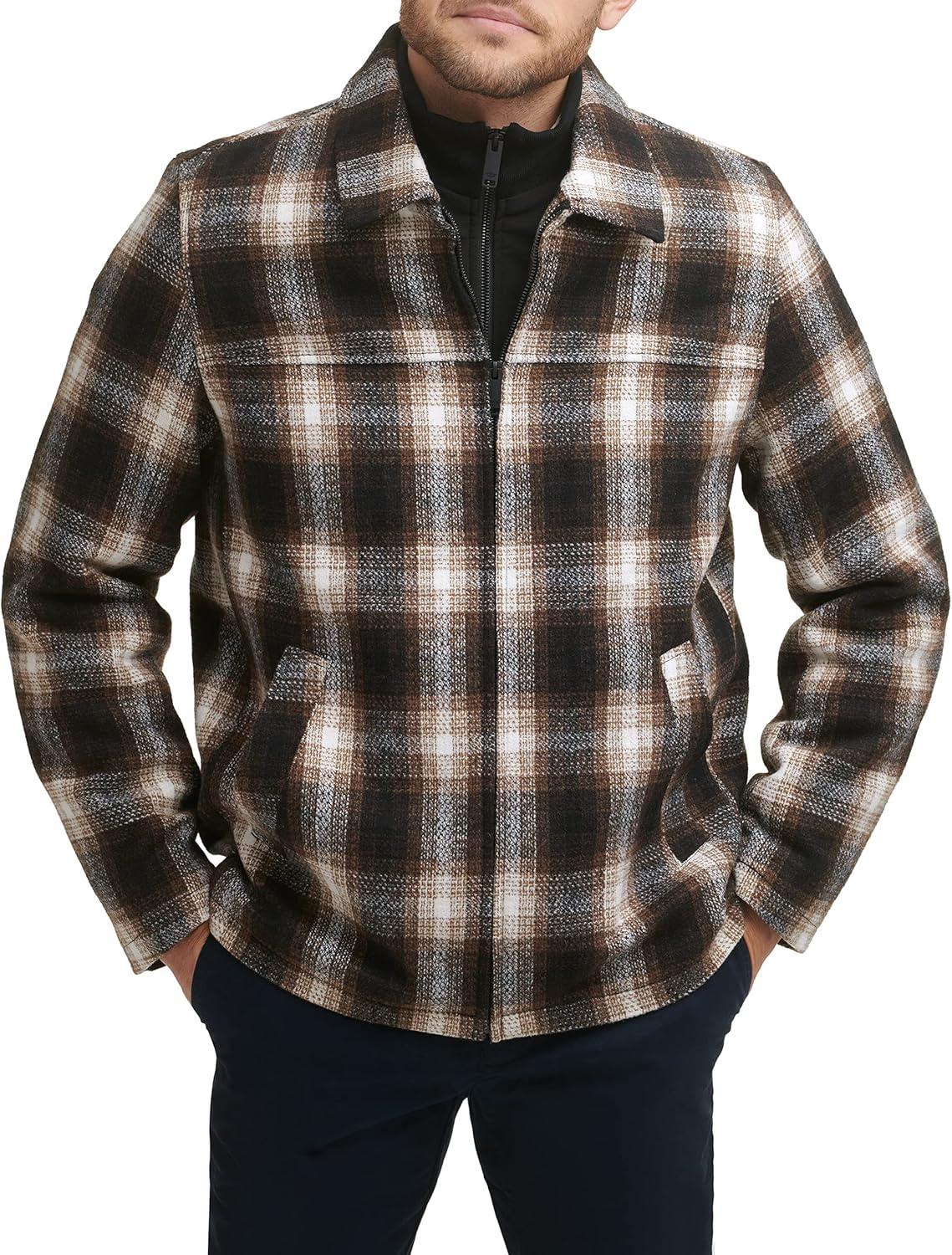 DOCKERS Men’s Wool Blend Zip Up Jacket with Quilted Bib(Brown Fancy)