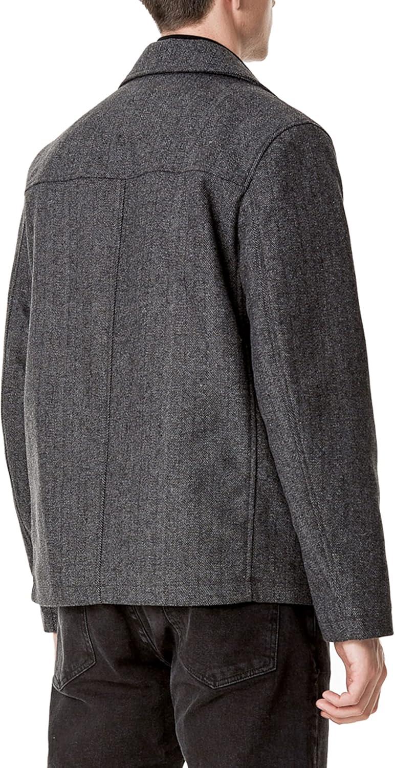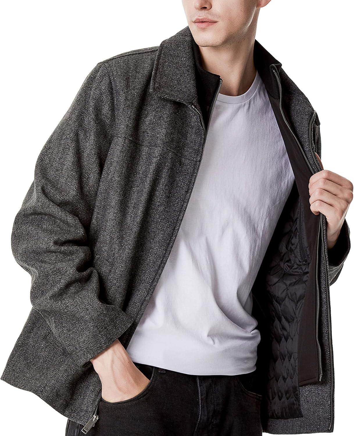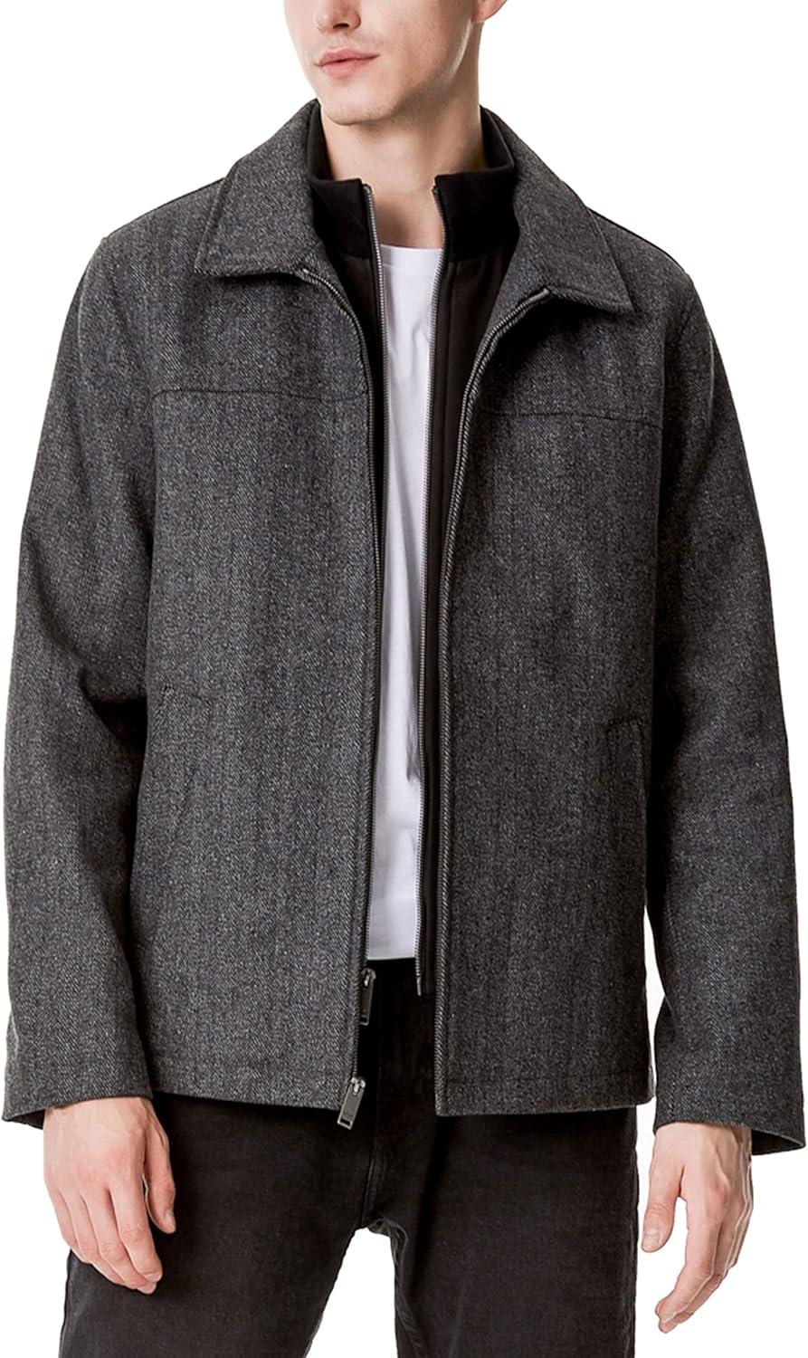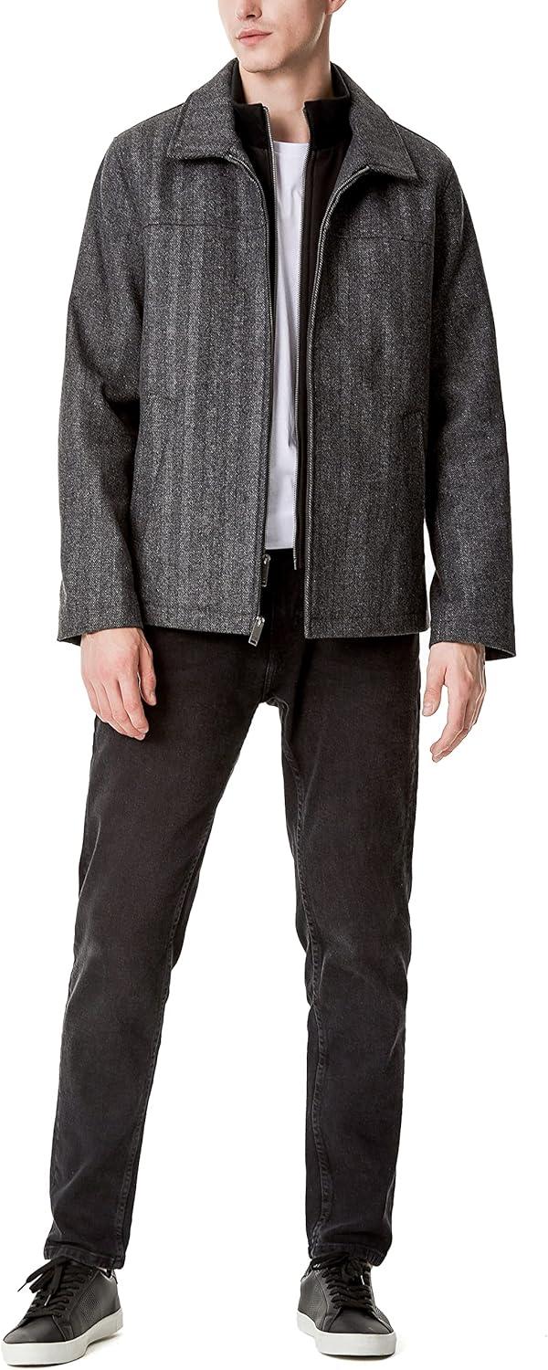 DOCKERS Men’s Wool Blend Zip Up Jacket with Quilted Bib(Charcoal Herringbone)