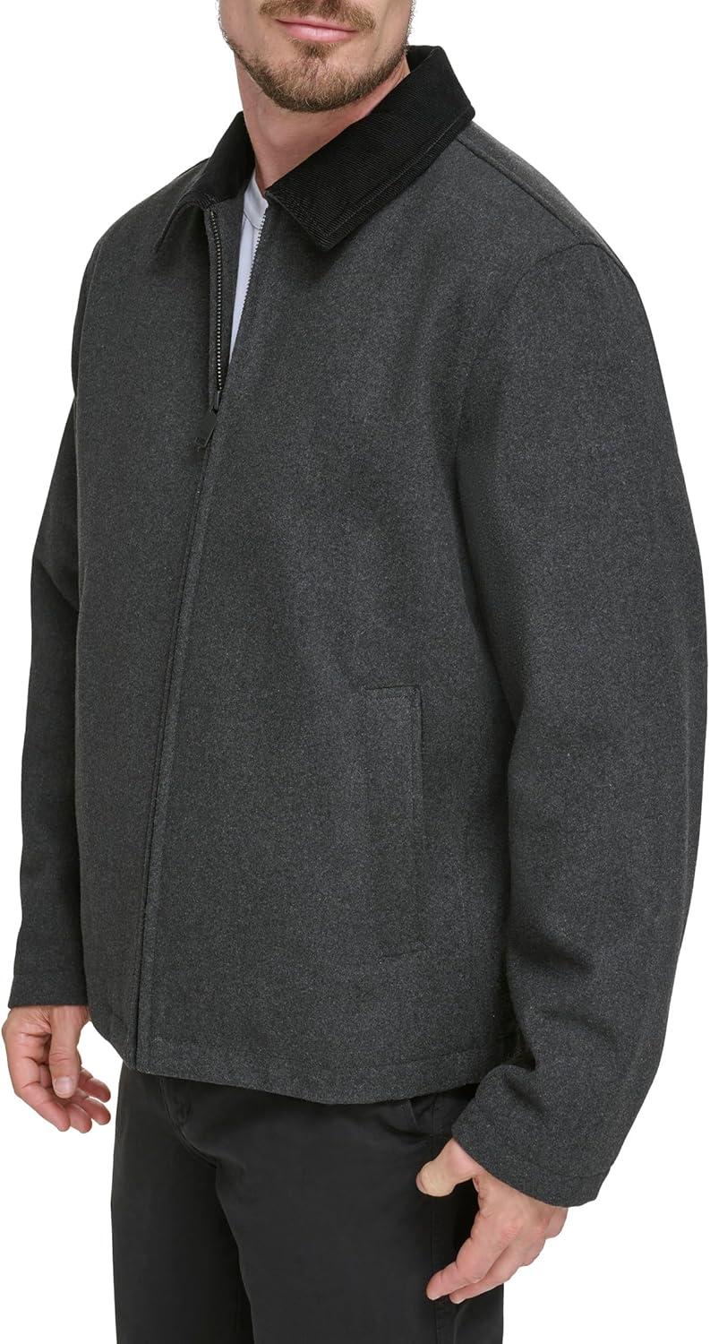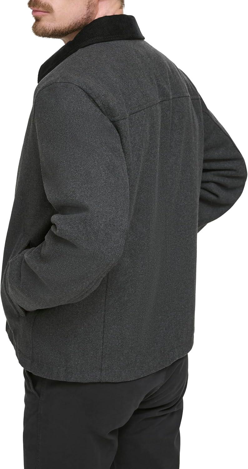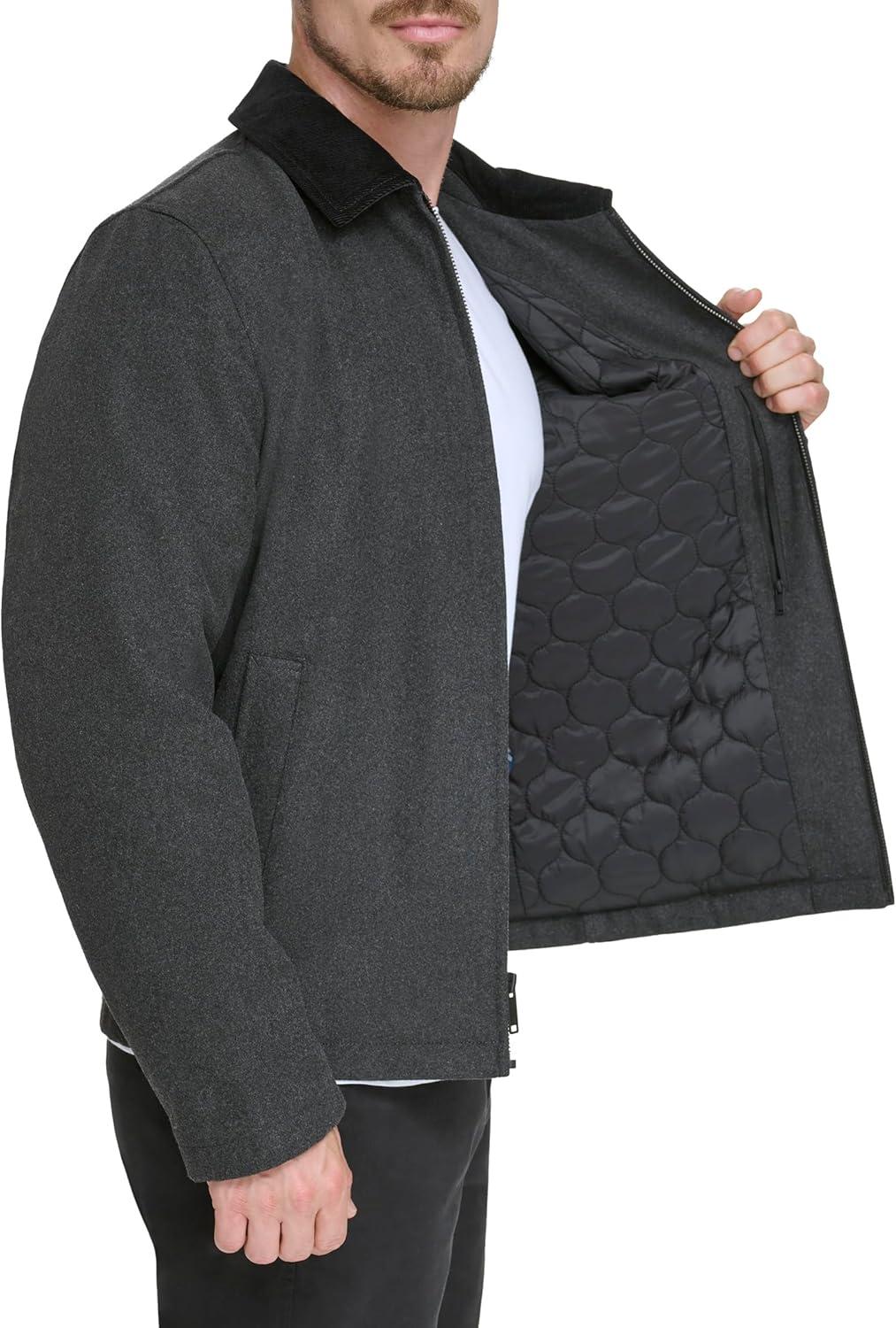DOCKERS Men’s Wool Blend Zip Up Jacket with Quilted Bib(Charcoal (Without Bib))