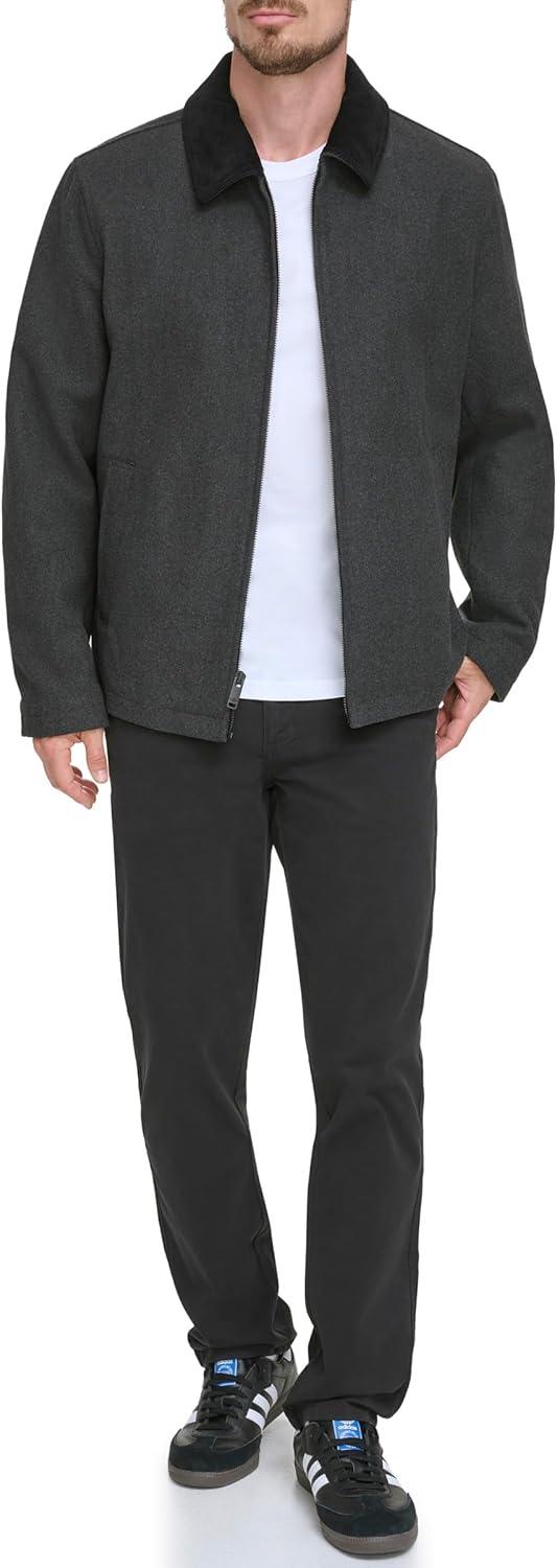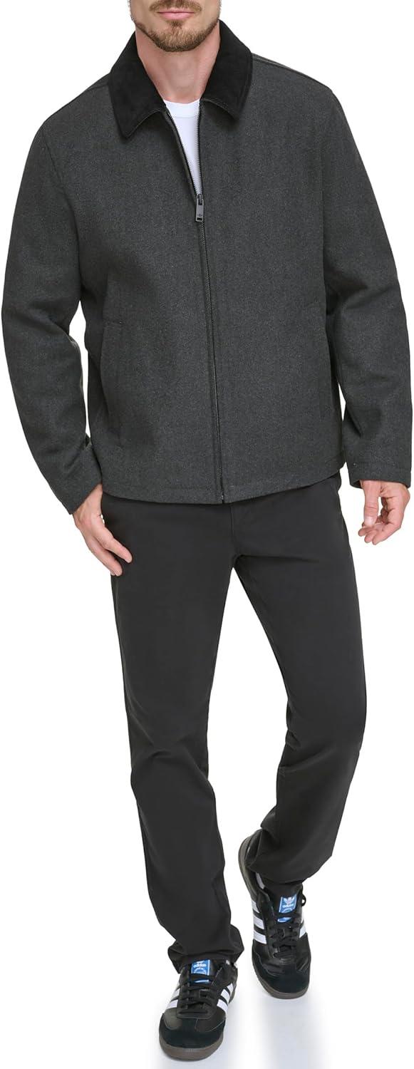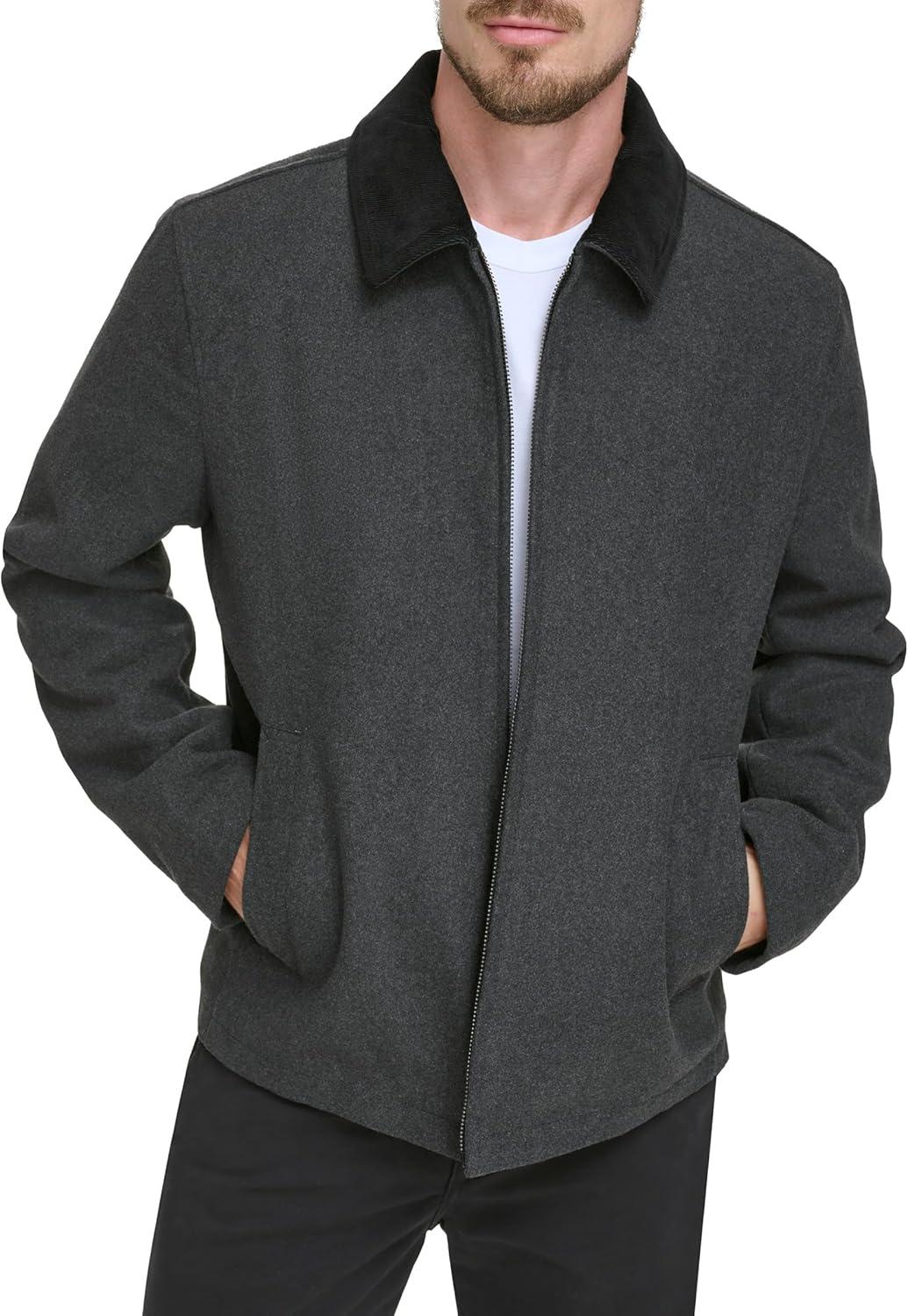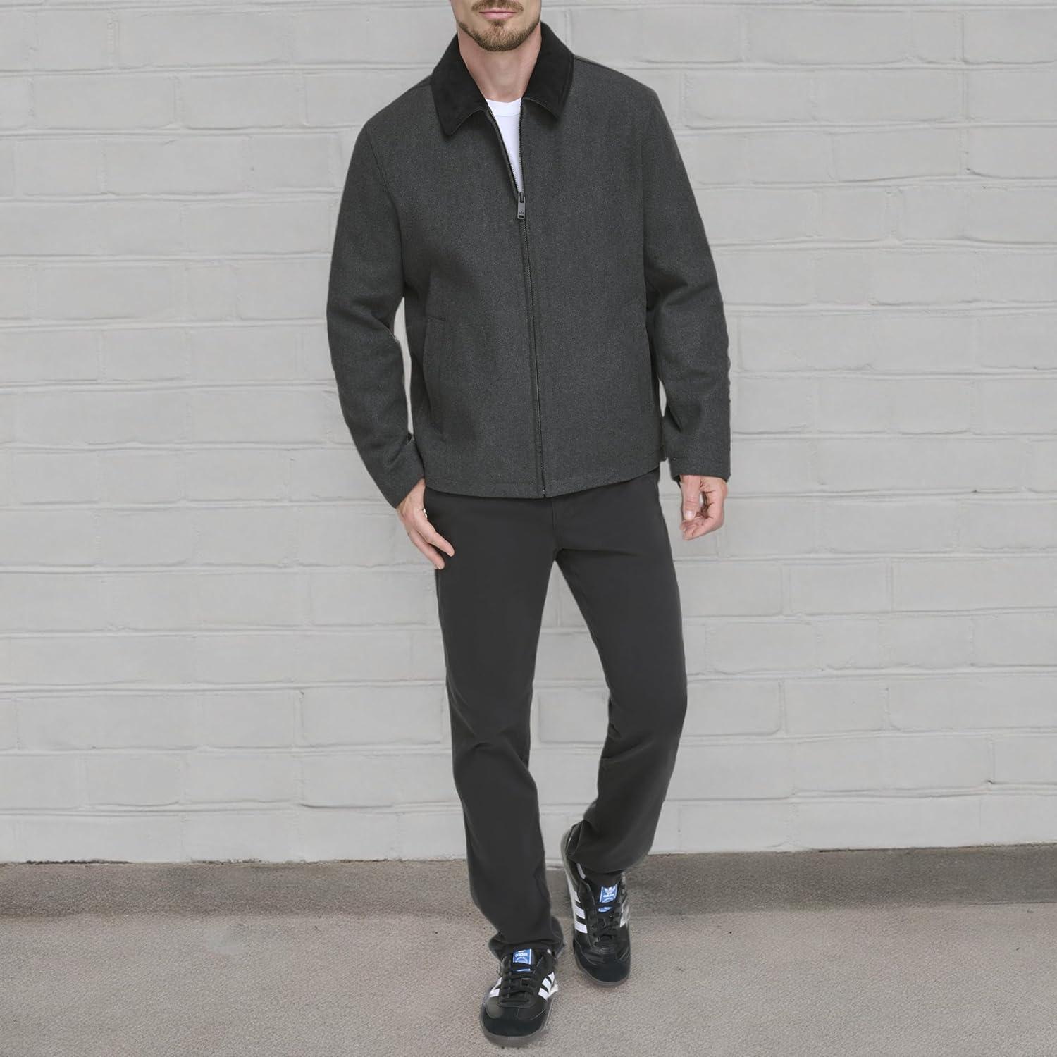 DOCKERS Men’s Wool Blend Zip Up Jacket with Quilted Bib(Charcoal (Without Bib))