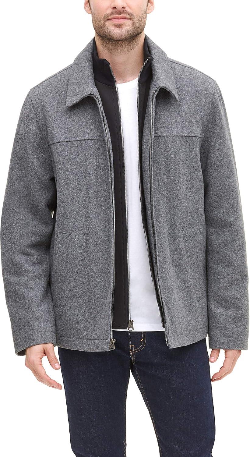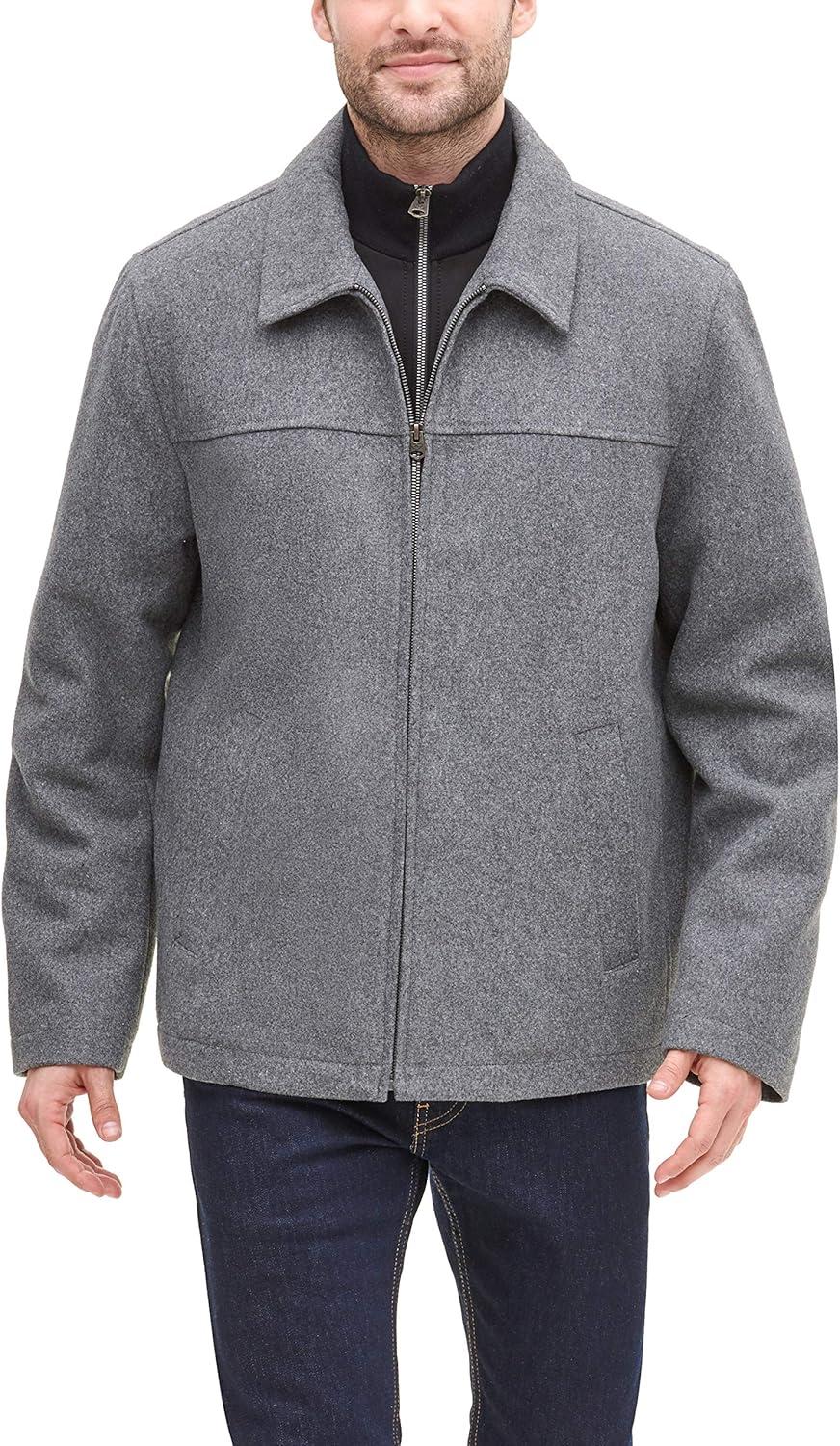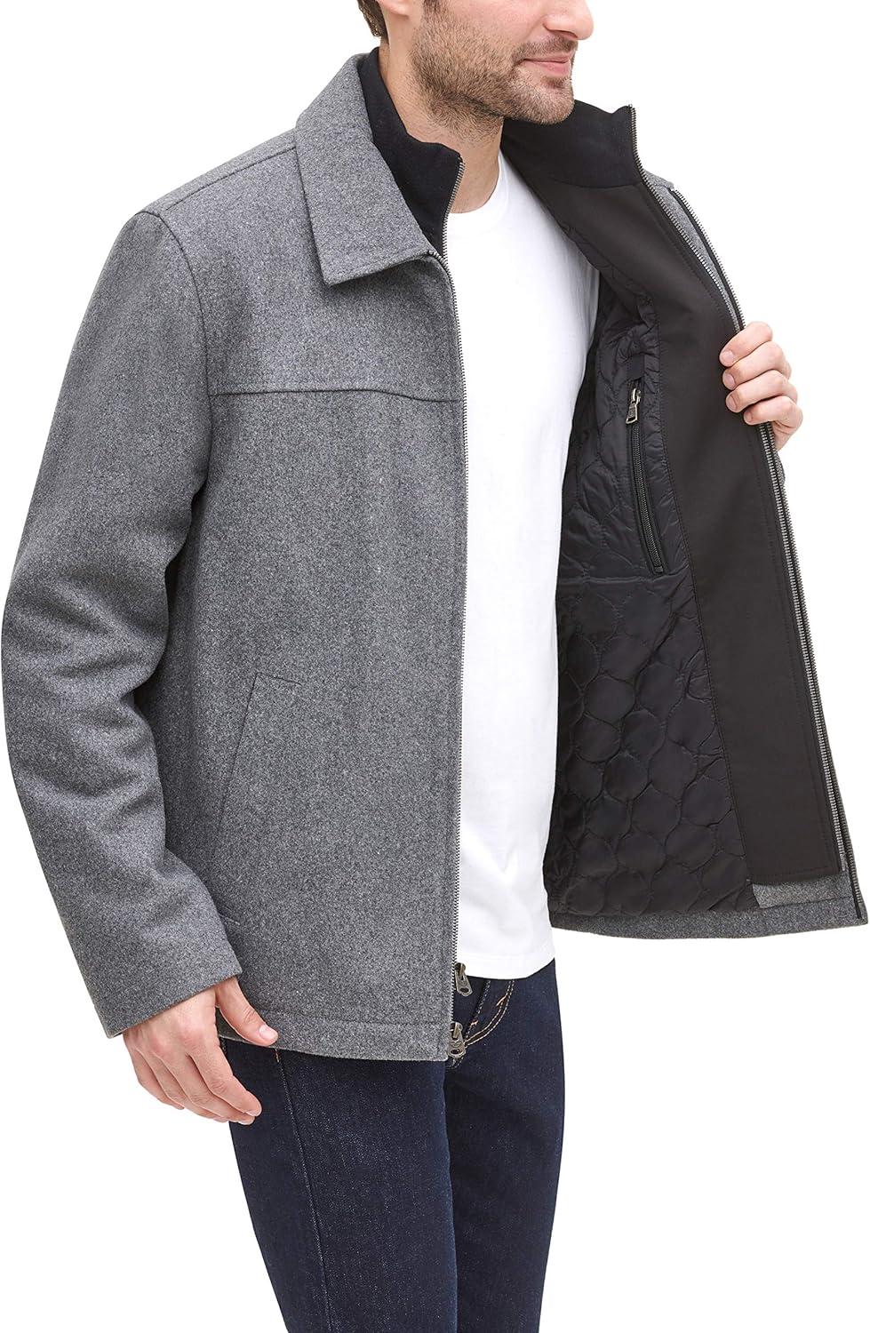 DOCKERS Men’s Wool Blend Zip Up Jacket with Quilted Bib(Light Grey/Softshell Bib)