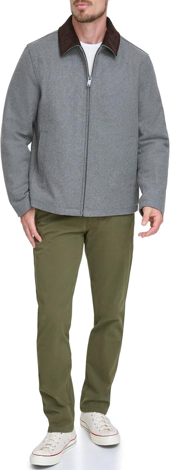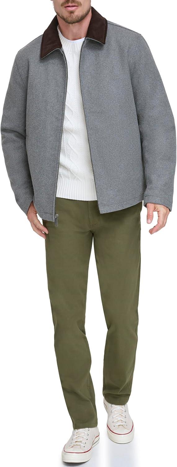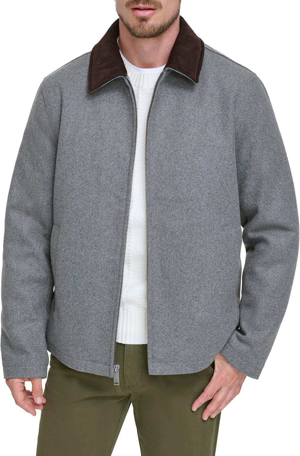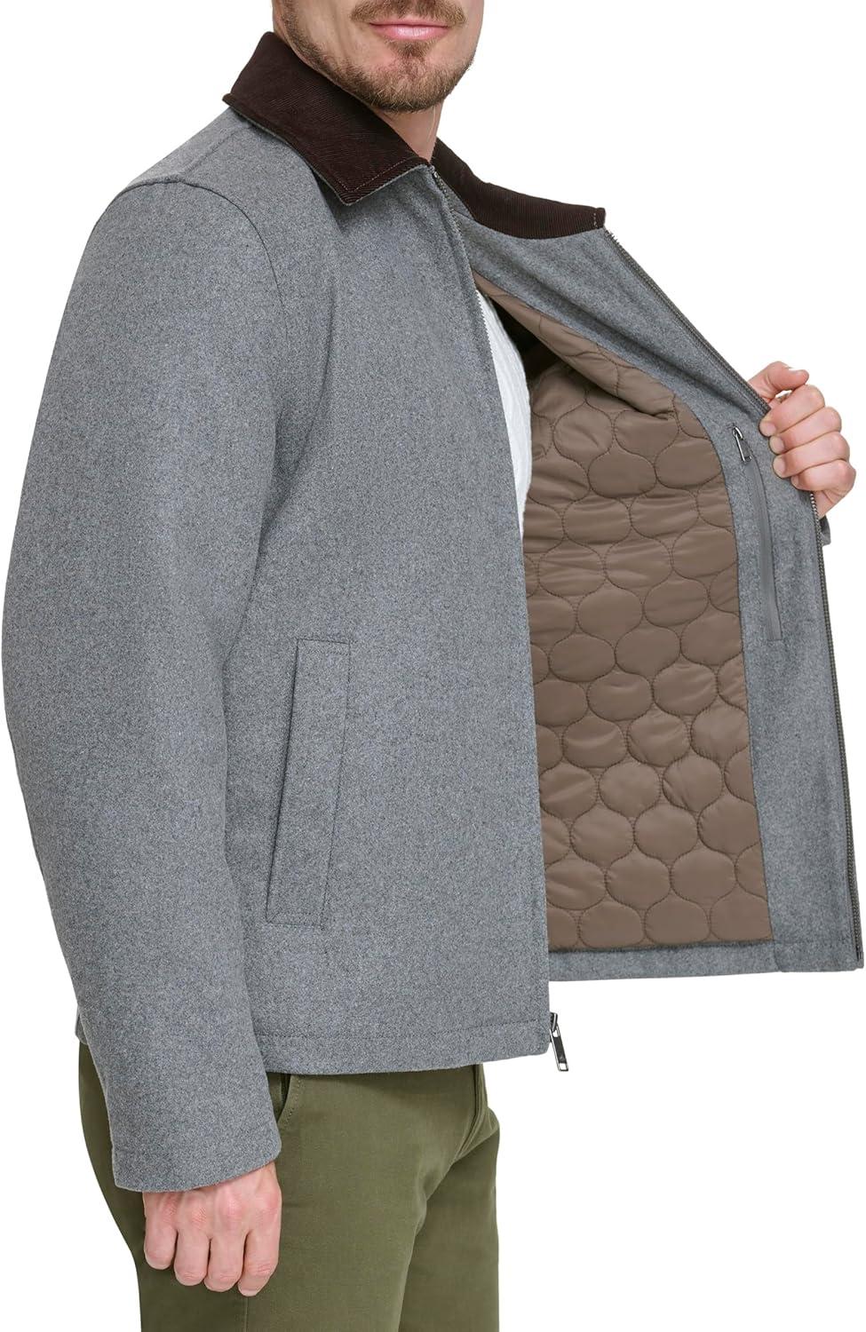 DOCKERS Men’s Wool Blend Zip Up Jacket with Quilted Bib(Light Grey (Without Bib))
